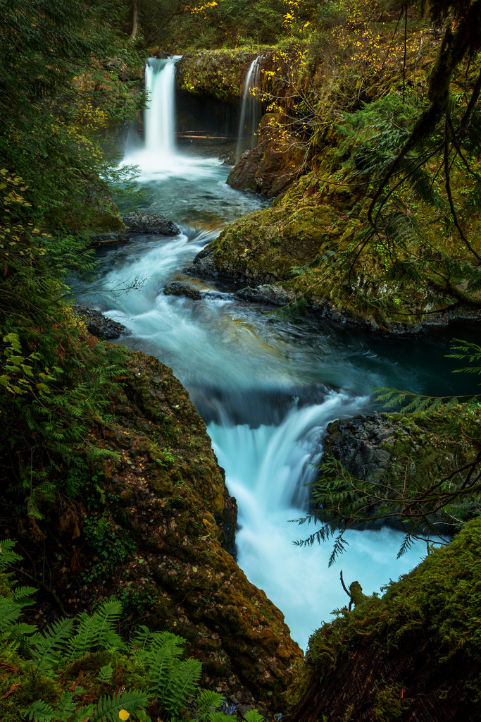 From Multnomah I drove on to Elowah Falls, a short one-mile hike from the parking area. It was impossible to approach the base of the falls without getting soaked in the spray, so I worked my way down to the creek bed for a few shots. Even there it was tough to keep my camera lens dry.