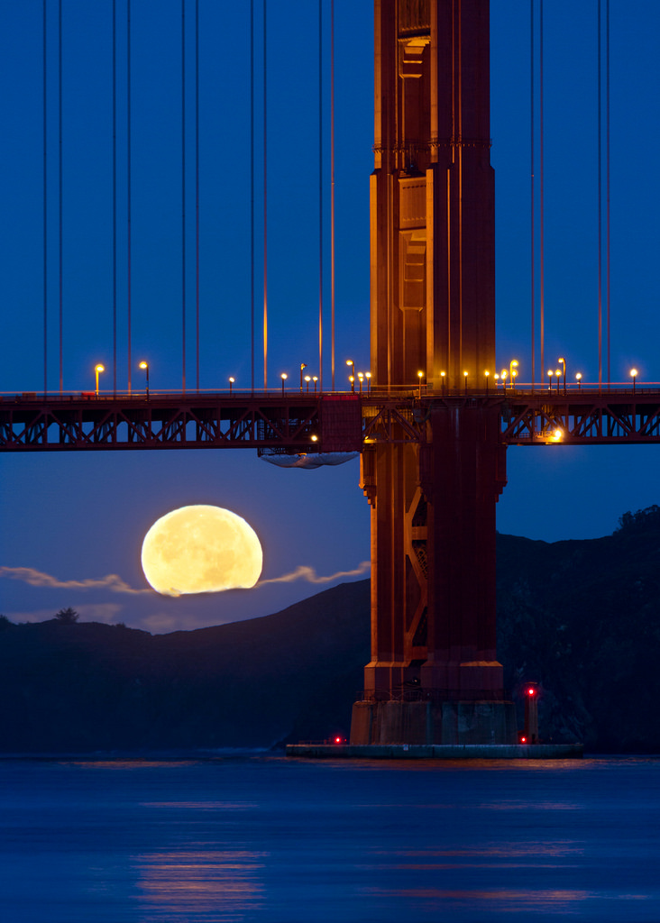The timing looked pretty good the day before Thanksgiving for a shot of the moon setting before sunrise. A really helpful online tool called The Photographer’s Ephemeris shows exactly where the moon will be at any given point in time, and based on the angle I decided to position myself at Crissy Field to try to catch the moon behind the south tower of the Golden Gate Bridge.