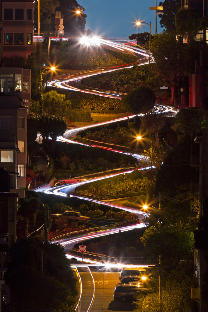 Not long after that I decided to finally take a photo of Lombard Street I’ve had on my list for a long time. From a nearby hill, with a telephoto lens and a long exposure, you can capture the light trails of cars zig-zagging down the famously curvy part of the street. I’d seen the composition in someone else’s photo, so it’s not original, but I wanted my own version.