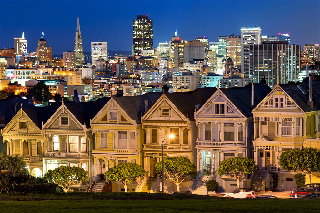 After sunset that same day I tried to get a shot of the moon rising behind the famous Painted Ladies (a row of Victorian houses by Alamo Square), but the angle wasn’t quite right. I settled for the classic, moon-free shot instead.