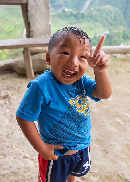 At Banaue I was met by Regina, a local guide who worked for the hotel I’d booked for the next two nights. She talked me into a three-hour hike, and soon after lunch we rode a tricycle (the Filipino version of a rickshaw or tuk-tuk, basically a motorcycle attached to a partially enclosed sidecar) up to the main viewpoint overlooking Banaue’s Ifugao rice terraces.