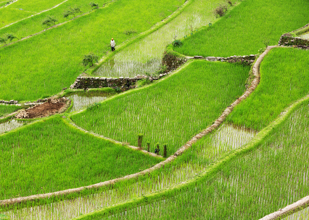 After a quick breakfast I hiked down past Babloi, the small village in the middle of the rice fields. The paths between the terrace levels were often nearly vertical, and when I went up or down I unashamedly used my hands to steady myself. The paths along the edges of the terraces were mostly wide and level, but I was gun shy after my previous spills and didn’t have any trouble picturing embarrassing scenarios. If I fell in one direction I’d land in a rice paddy and sink in the mud. If I fell in the other direction I’d plummet about 10 feet before landing in a rice paddy and sinking in the mud.
