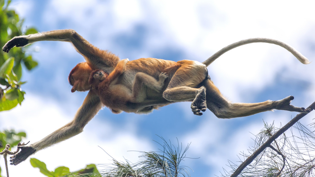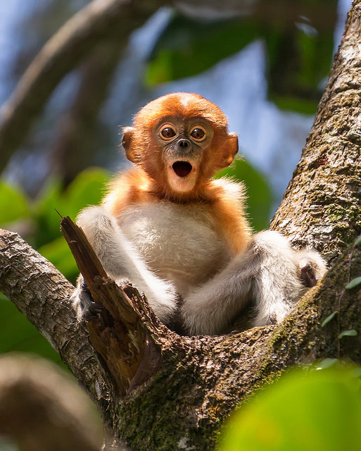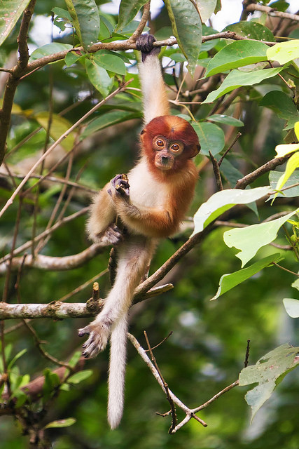 Patience was key.  If I spotted a group of proboscis monkeys and followed them long enough, they almost always dropped down from the treetops.  And if I was quiet and made no sudden movements they let me get pretty close.  Some of the moms even left their babies in plain view.