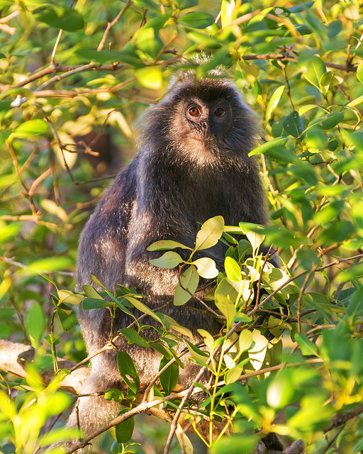 That afternoon I did another relatively quick hike to the end of the Delima Trail, but I spent most of my time walking along the paths near HQ, where there was almost always some kind of wildlife.  Before too long I encountered the park’s third monkey species, the silvery langur (sometimes called silvered leaf monkey or silvery lutung).  They were the shyest of Bako’s monkeys.