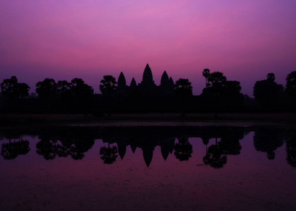 The next day I took it easy and worked on photos, and the day after that I returned to Angkor Wat before dawn for one more round. This time I left my hotel 15 minutes earlier in order to catch the color that sometimes appears well before the sun rises, even when the sky is hazy.
