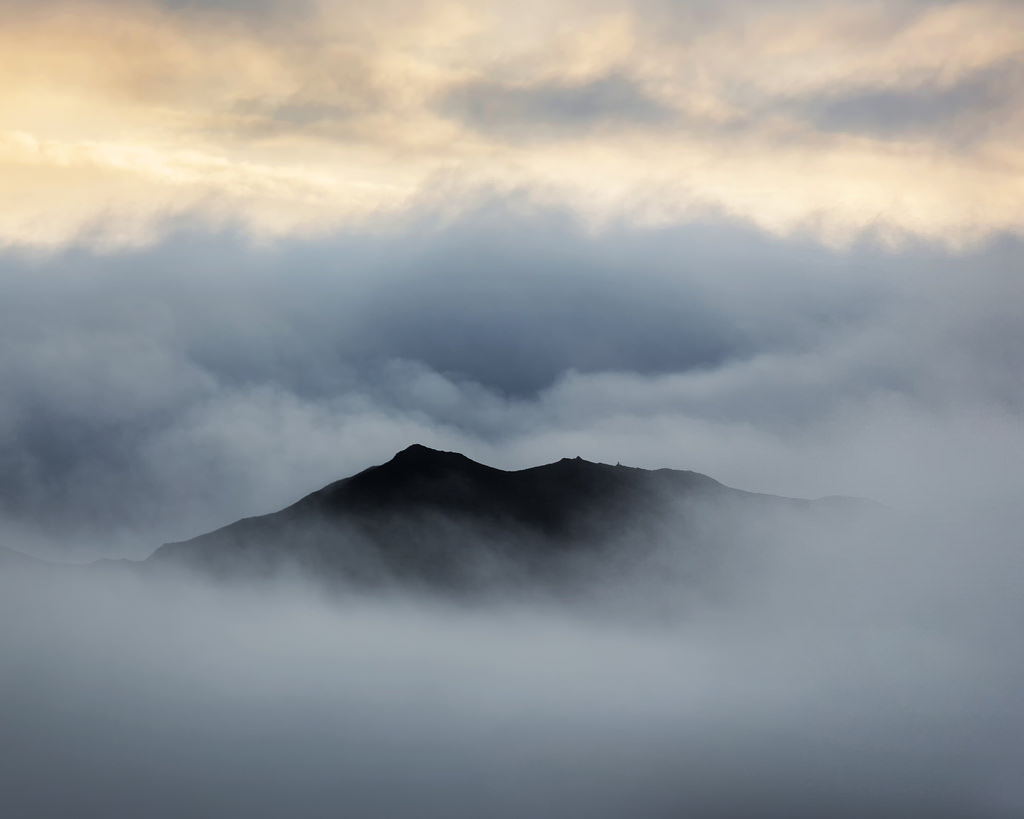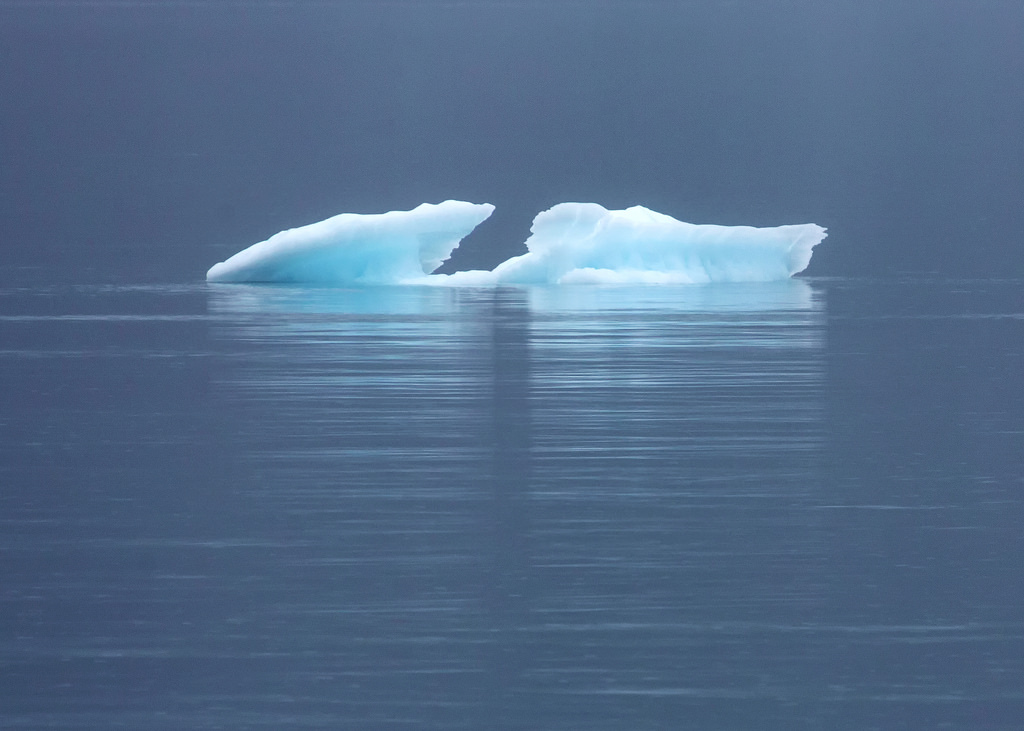I stayed nice and dry in my tent that night, and whenever the rain took a short break I could hear the whooshing sound of whales spouting in the bay. Early the next morning I boarded the Baranof Wind for a full-day cruise up Glacier Bay, all the way to the Tarr Inlet and back. We never saw the sun, but the clouds and thick gray fog created a subdued, melancholy mood that was fun to photograph.
