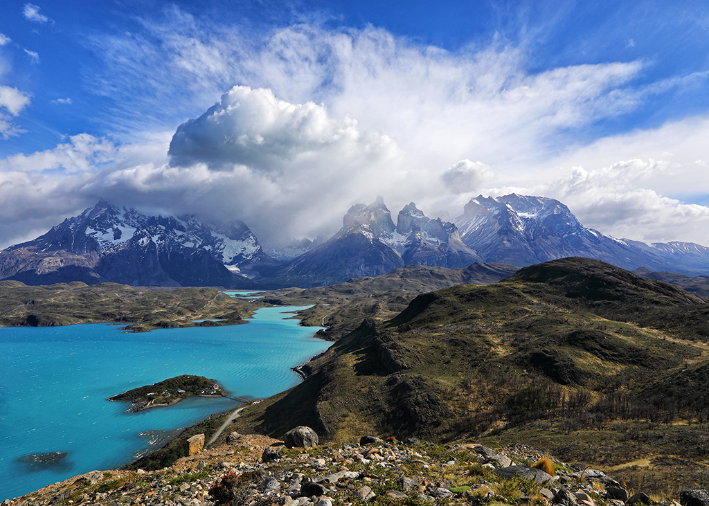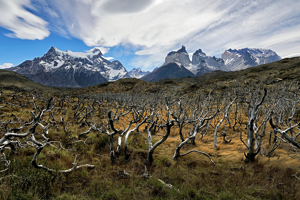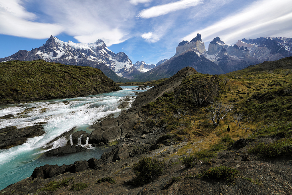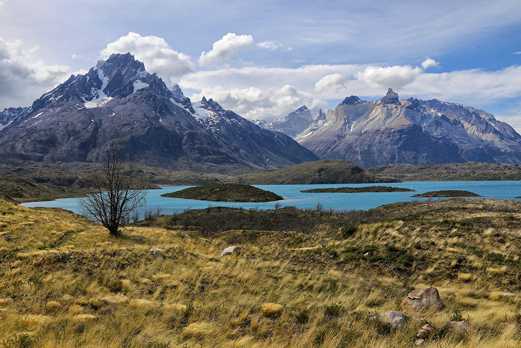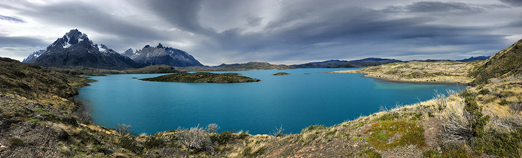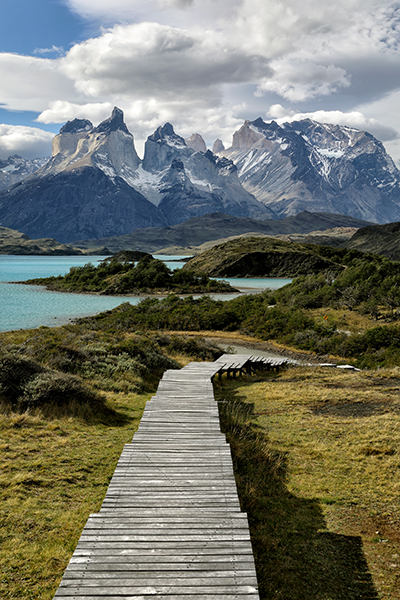 The view from Hosteria Pehoe didn’t disappoint. The hotel is on a small island in the middle of a lake, and at the top of a hill on the west side of the island you can see for miles in every direction. On my first afternoon I took some shots from the hill before scouting locations further south, including the boardwalk trail connected to the luxury Explora hotel.