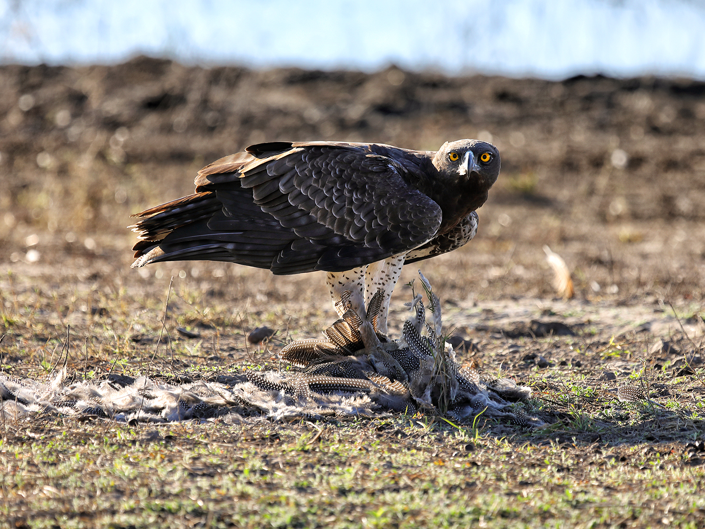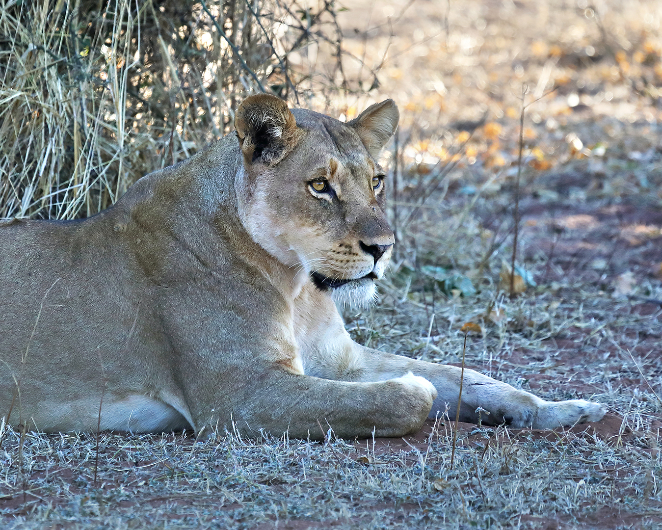 At sunrise the next morning we drove out to look for the lions. Ace found their tracks but the lions managed to stay hidden all day. I was frustrated that Ace’s radio wasn’t working, which meant he didn’t know when other guides saw something interesting. We were lucky enough to spot a honey badger – the first I’d ever seen in the wild – running parallel to us about 20 meters away, but I didn’t manage to get a good shot before it vanished.