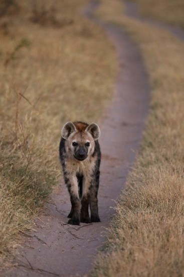 Soon after leaving the cubs we found a hyena walking towards us on the road, just starting its nocturnal prowling in the fading light. “If the hyena sees those lion cubs he will eat them,” said Ace.