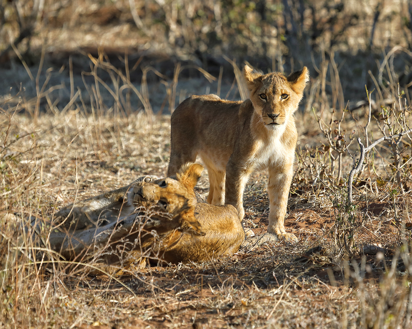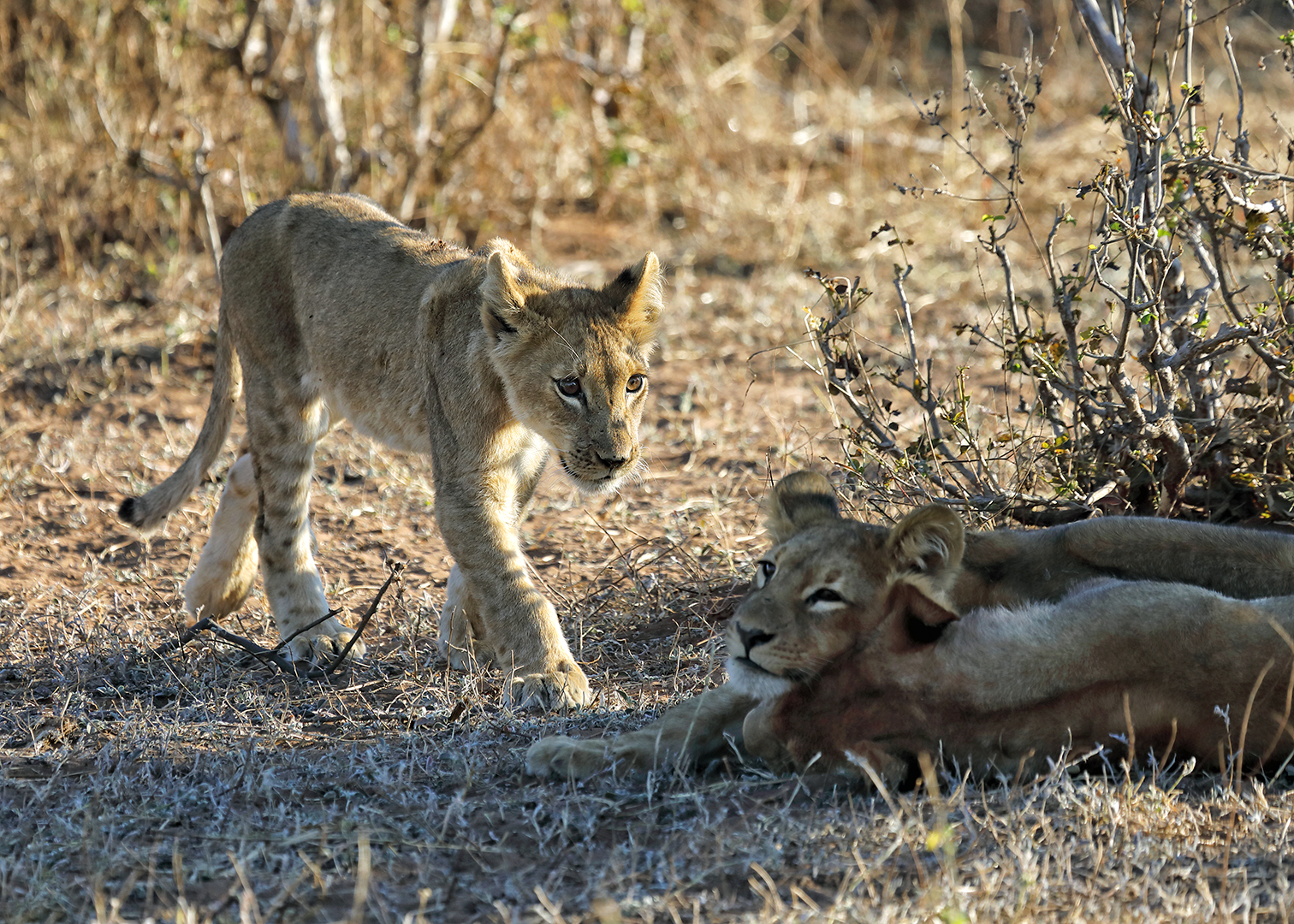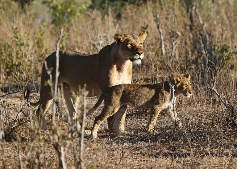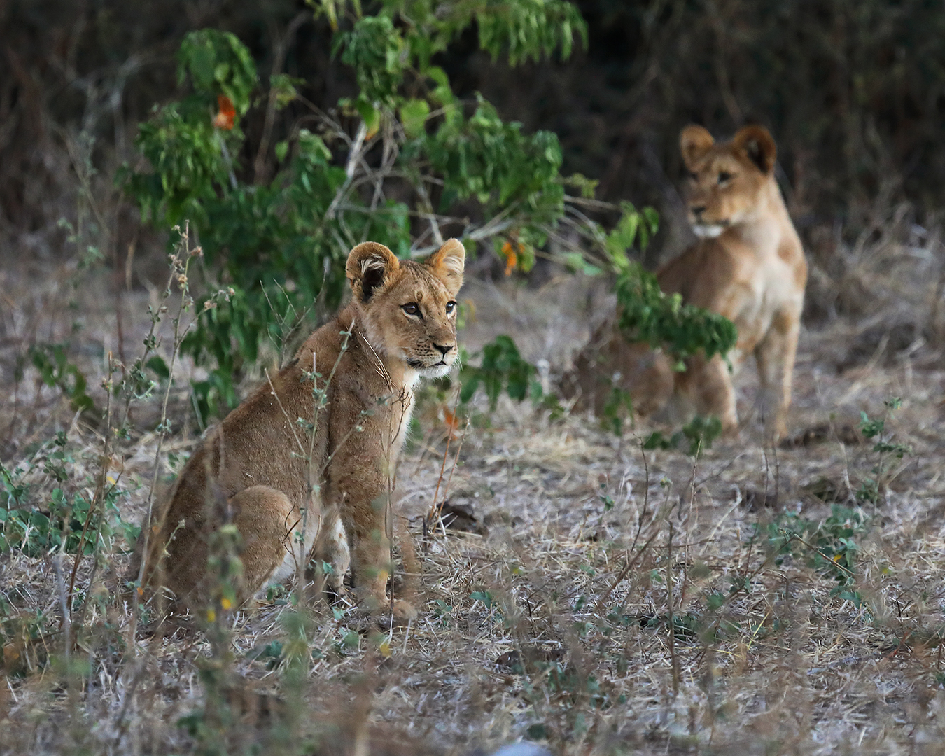On our way back to the campsite after sunset I caught a glimpse of yellow fur moving in the brush. “Lions!” We’d stumbled across eight lion cubs play-stalking impalas.