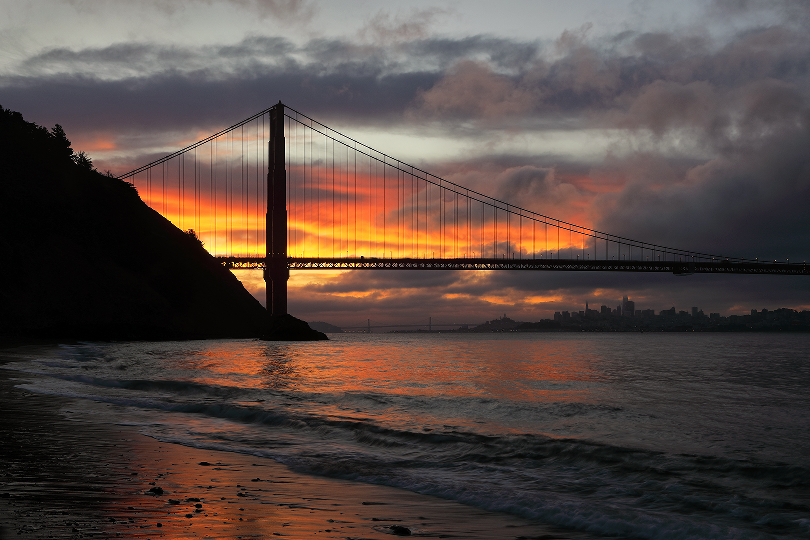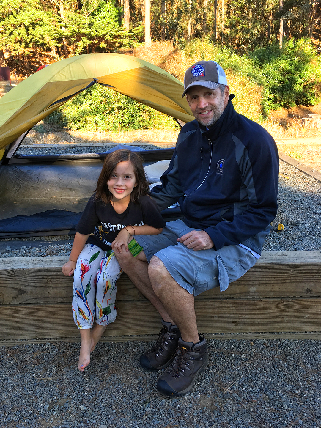 I spent the next week being lazy at Marie’s place, venturing out only because I’d been lucky enough to get a site at Kirby Cove, a small campground behind a tiny sliver of beach right next to the north tower of the Golden Gate Bridge.  My friends Phil and Lawrence joined me, along with Lawrence’s adorable seven-year-old daughter Lucia, who seemed to have a blast playing in the surf and sleeping in a tent.