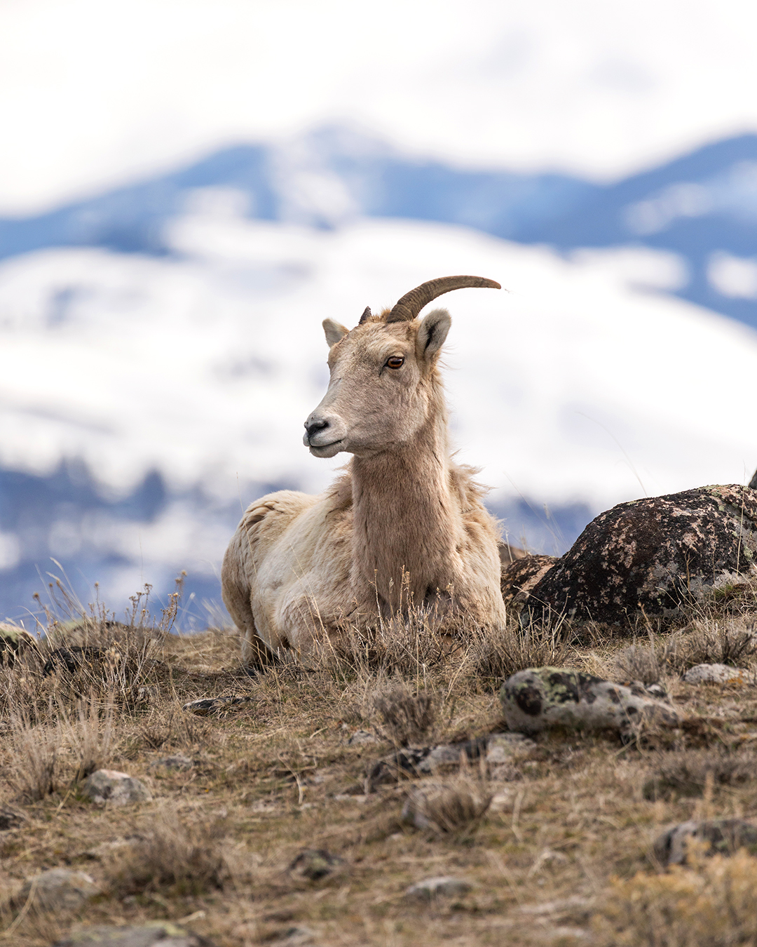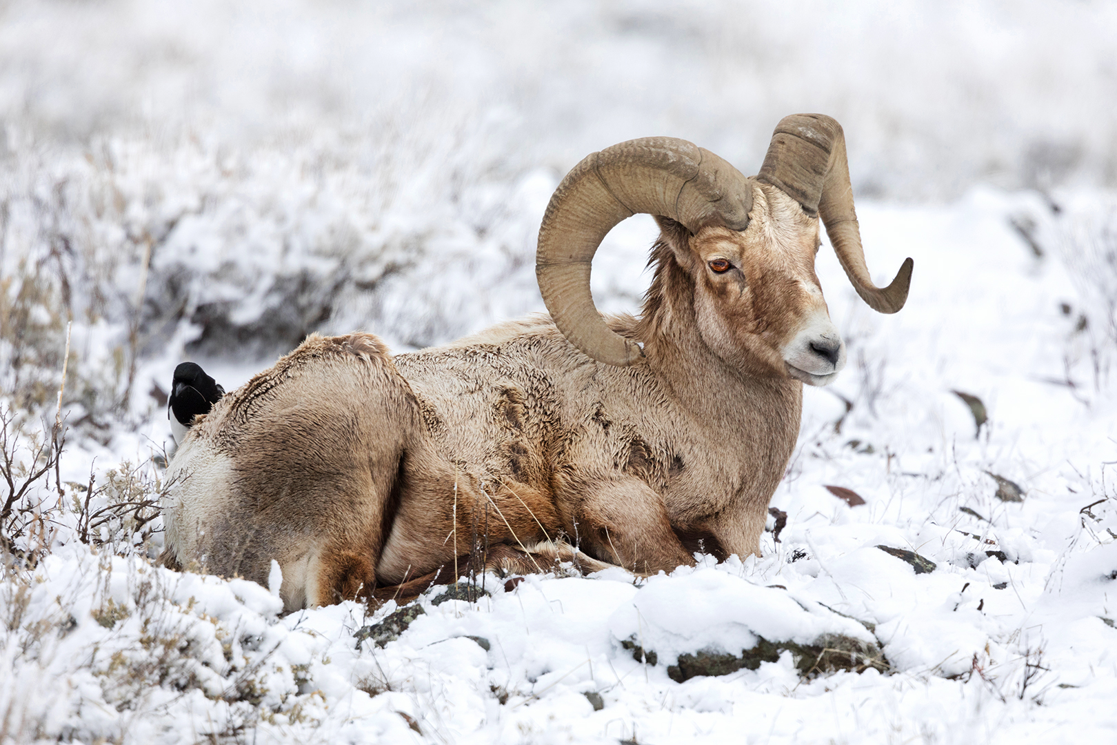 Bighorn Sheep in April Snow