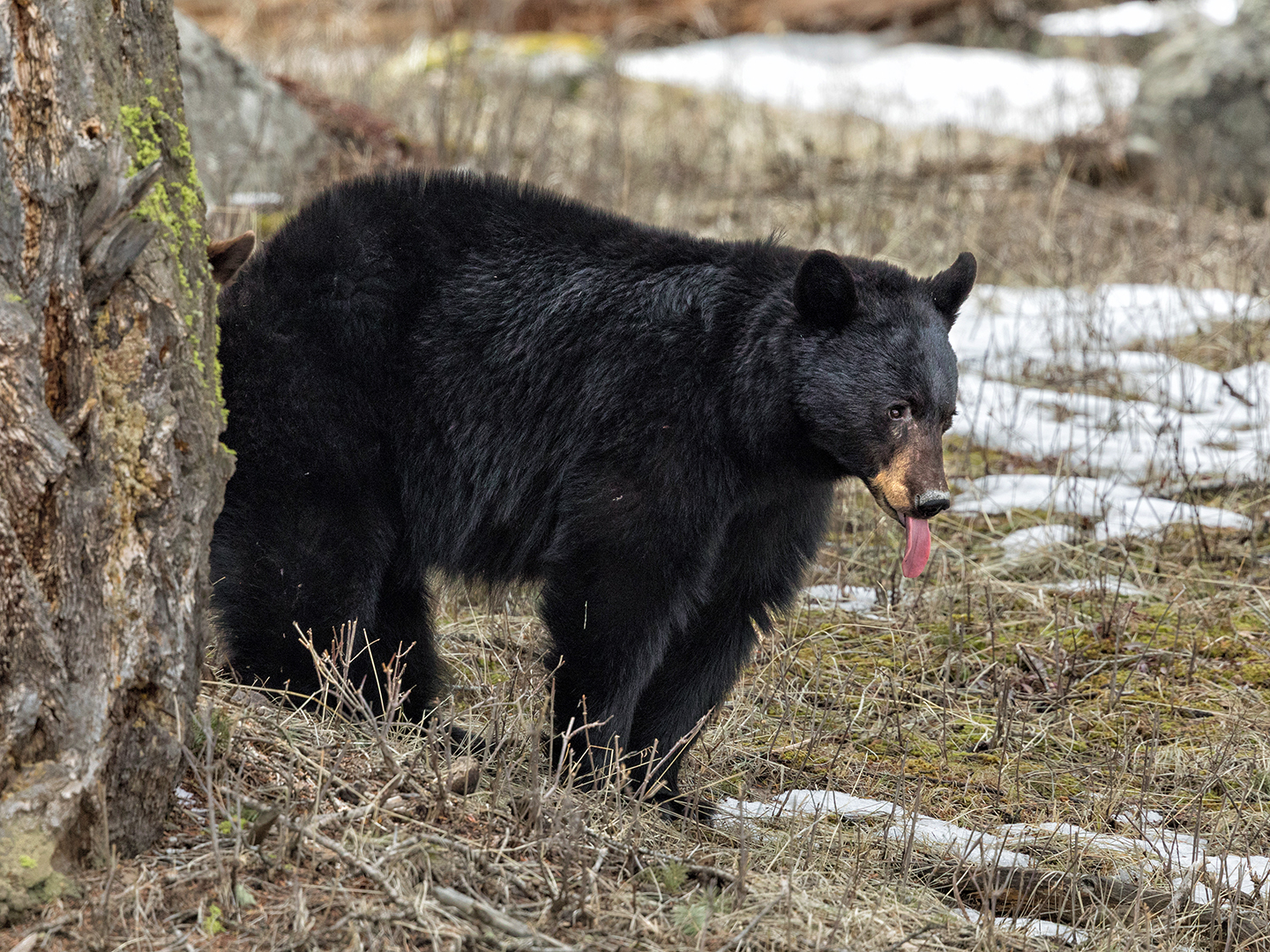 Black Bear Mom Sticking Out Her Tongue