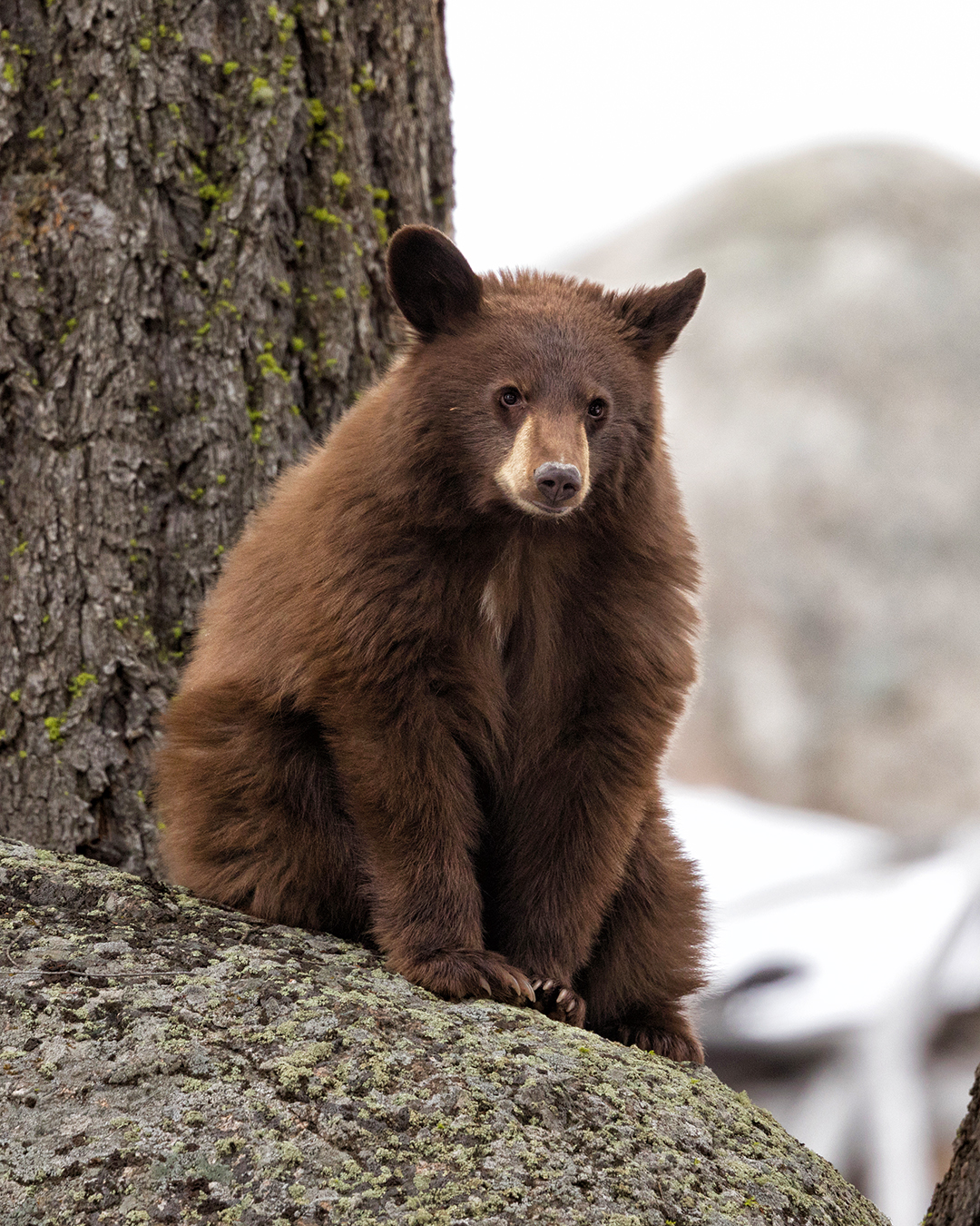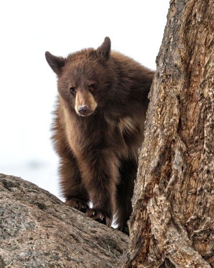 Cinnamon Cub Peeking Around a Tree