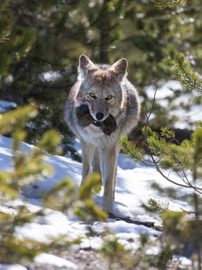 Coyote Carrying a Squirrel through the Woods