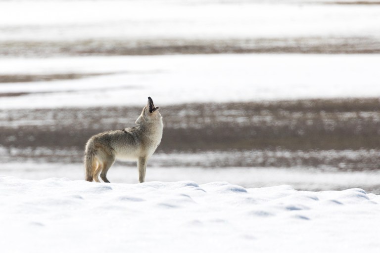 Coyote Howling in April Snow