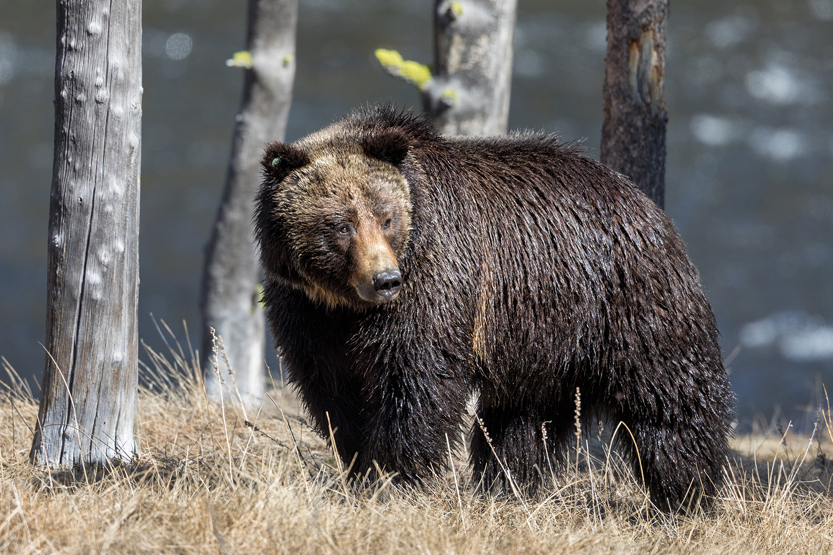 Grizzly Across the Firehole River