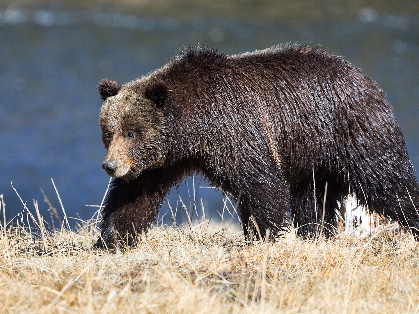 Grizzly Walking by Firehole River