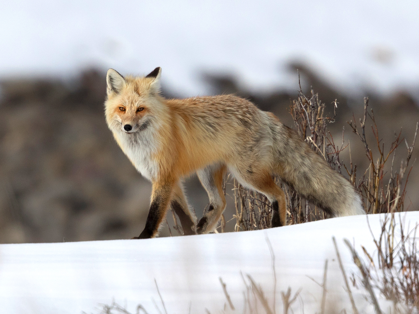 Red Fox Walking in April Snow