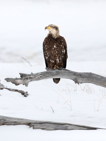 Young Bald Eagle Perched on a Log