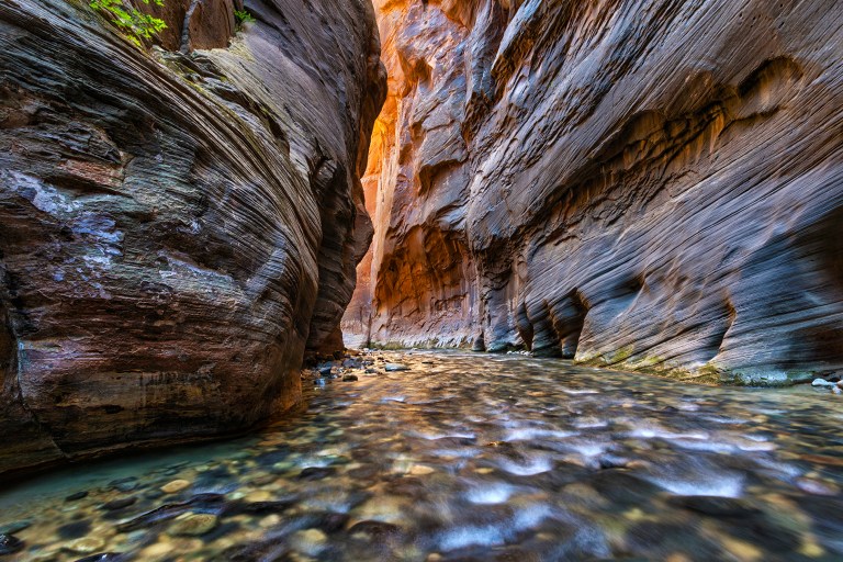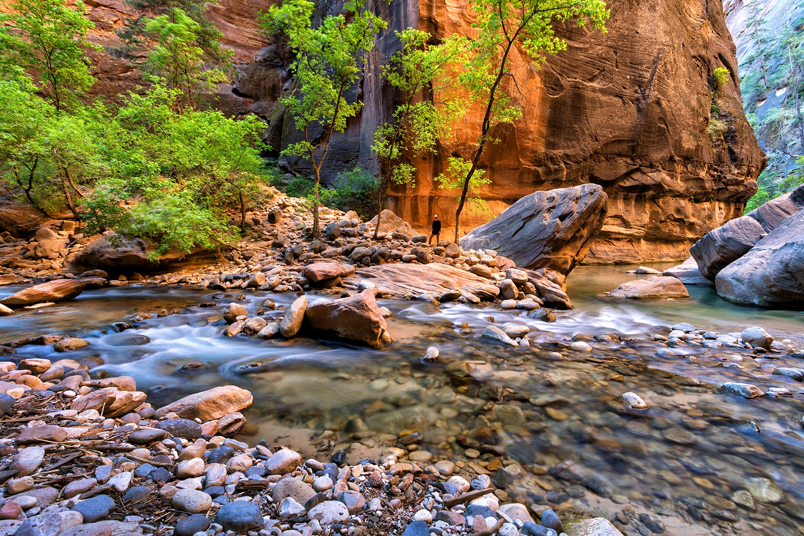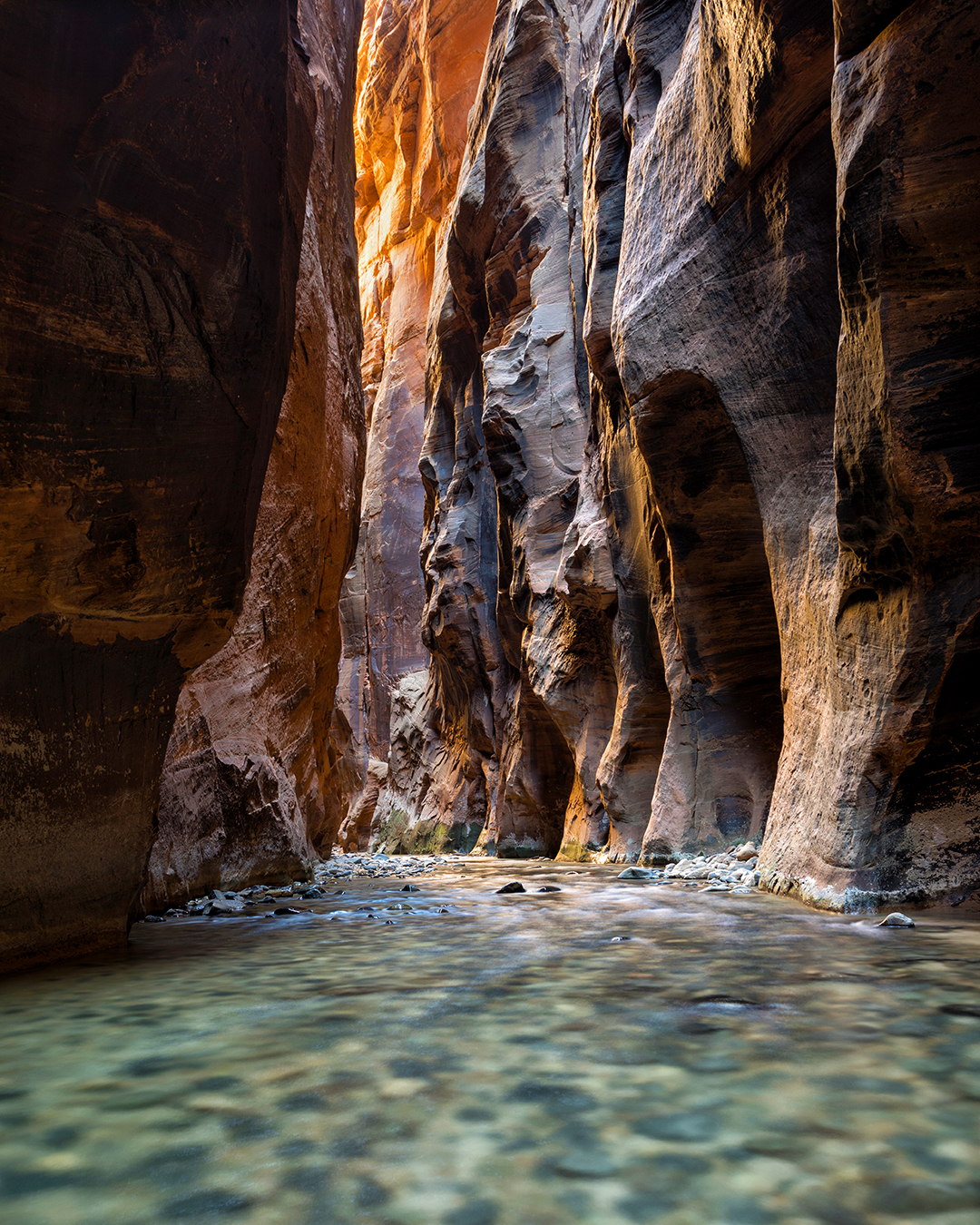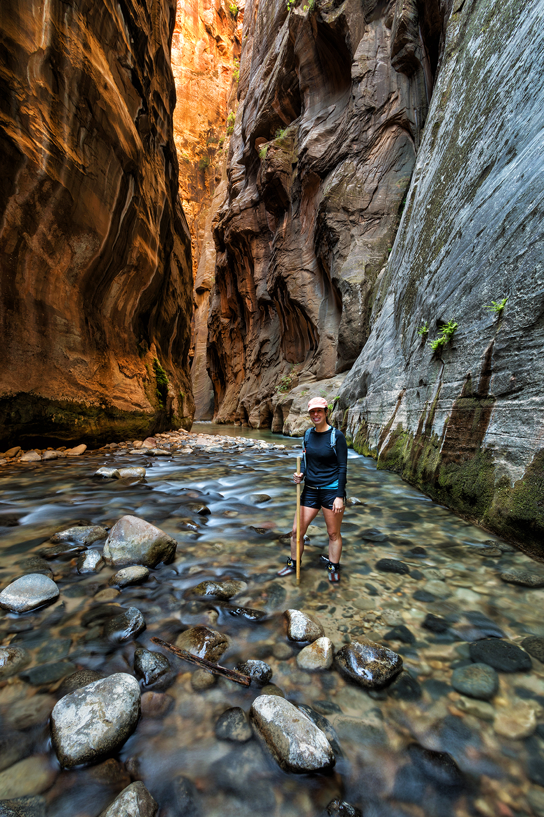 Marie and I spent a night at the Watchman campground and woke up early to catch the first shuttle bus to the trailhead for The Narrows. I’ve lost count of how many times I’ve hiked The Narrows (most recently in 2017, 2015, and 2012), and it never disappoints. The crowds can be oppressive, but – by taking the first shuttle and hurrying along the initial section of the trail – Marie and I had the river entirely to ourselves for the first hour or two.