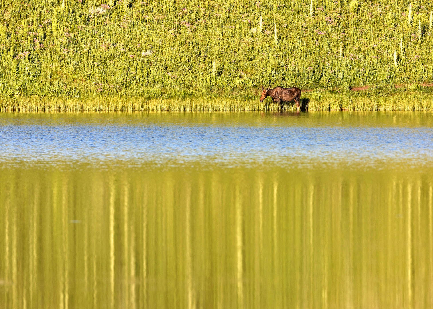 I didn’t completely ignore Yellowstone, of course.  I made regular runs to Lamar Valley, camped at Madison, and hiked up to Trout Lake many times.  River otters, I’d been told, can often be found at Trout Lake when the fish are spawning, which usually happens in early July.  I didn’t have any luck finding the otters up there, unfortunately, but I did have a great moose encounter one morning.