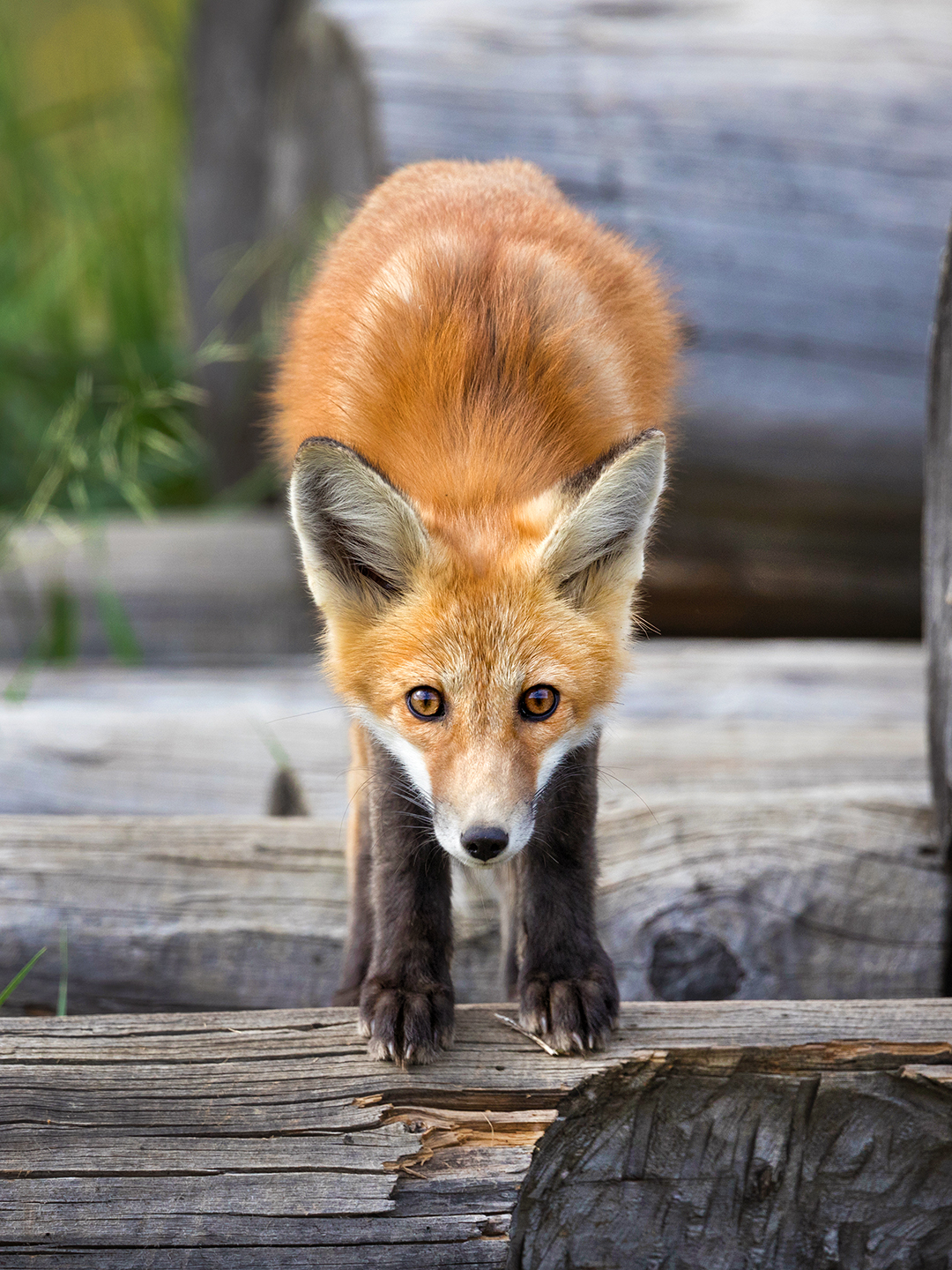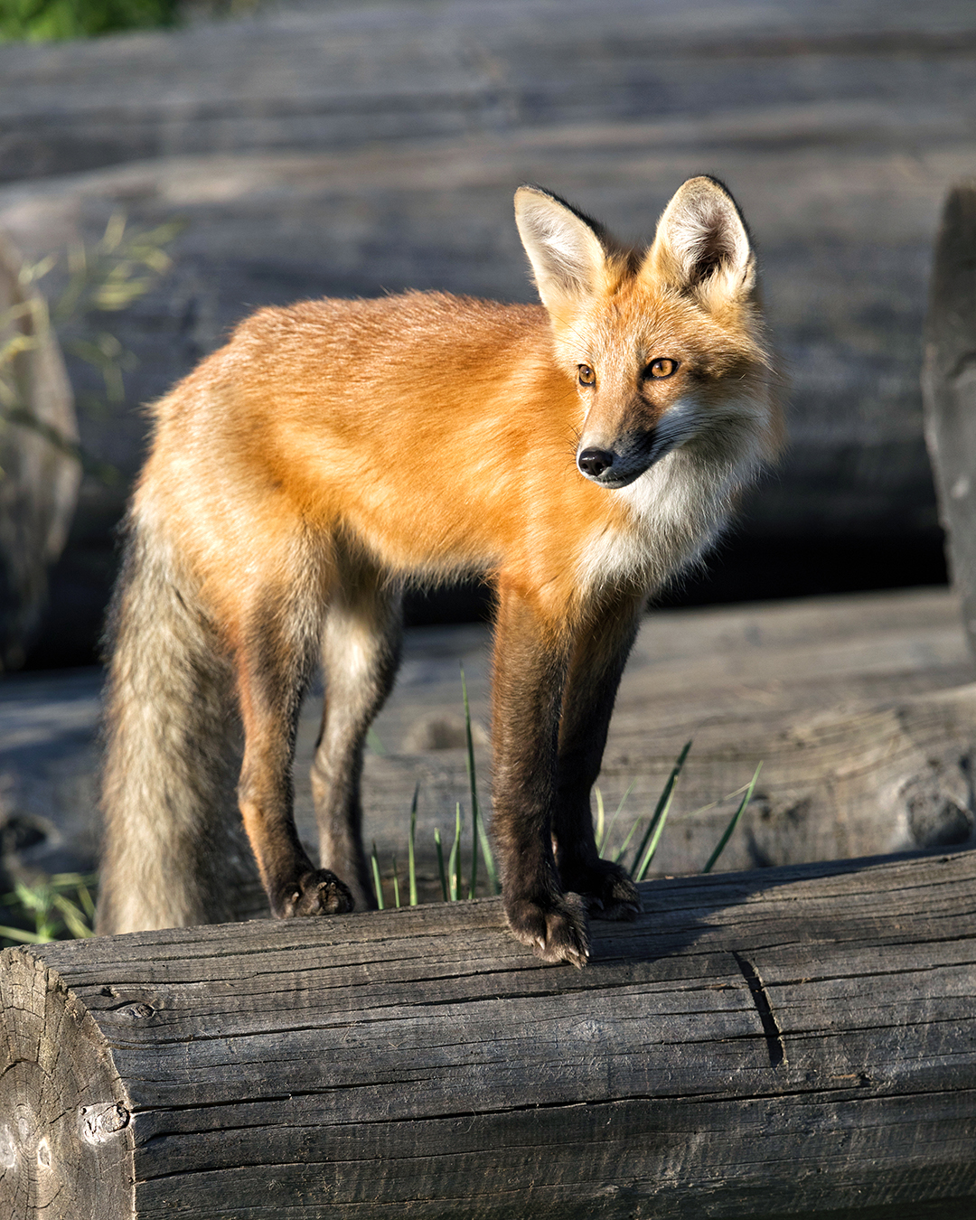 I started my search on Facebook, oddly enough.  The manager of my apartment building told me about a widely-used Facebook group for Livingston residents, so I put up a post asking if anyone knew of local wildlife spots they’d be willing share.  A few people were kind enough to respond, and one of the tips was especially promising – a fox den just 10 minutes away.  I drove over early the next morning and right there, only about 30 feet from the road, were a couple of young red foxes walking on top of an old log pile.
