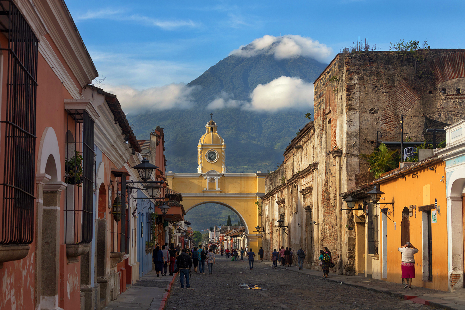 Antigua, Guatemala popped up as the prime candidate. The whole city is a UNESCO World Heritage site, with quaint cobblestone streets and old colonial buildings. Volcanoes loom over the southern and western horizon, making for what I hoped would be some good landscape photos. And the city is full of inexpensive language schools with flexible schedules. Antigua also happens to be as touristy as Guatemala gets, but correspondingly clean and safe, too.