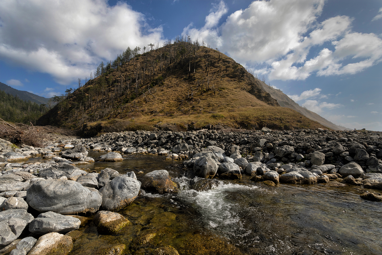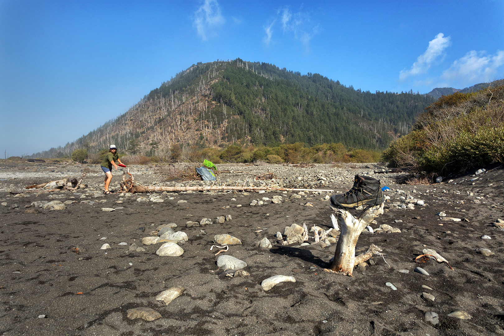 We didn’t emerge from our tents until well after sunrise. None of us seemed to be in a hurry to get going. “Frisbee golf?” asked Lawrence. Using a boot as our target, we improvised a few holes over Big Flat’s rocky landscape. David eventually won with a dead-on throw from 30 feet out.