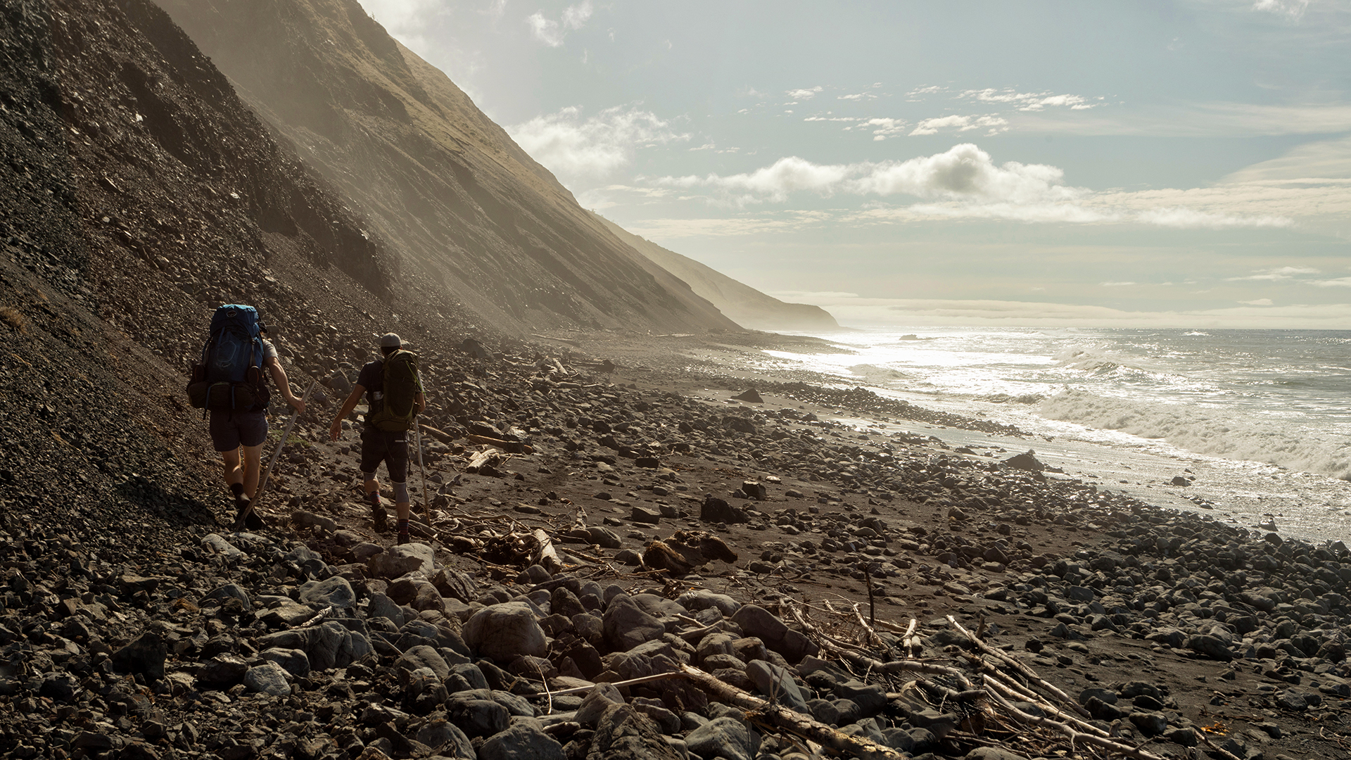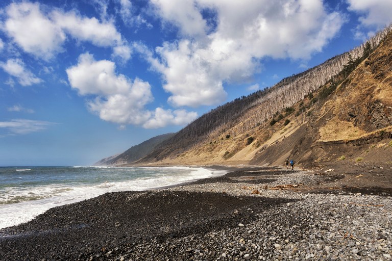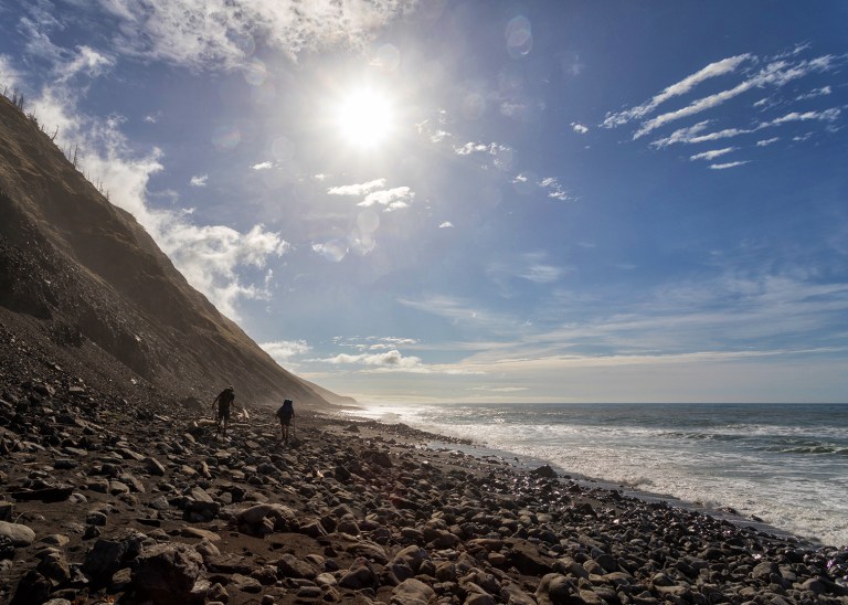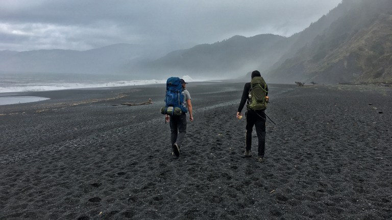 The Lost Coast is a stretch of the northern California shoreline that’s so rugged there are very few roads. State Route 1, a highway that hugs almost the entire coast of California, cuts inland at the Lost Coast and bypasses the whole area, leaving it mostly undeveloped and empty. The trail we planned to follow starts at Black Sands Beach in the small town of Shelter Cove and runs 25 miles north through the King Range Wilderness to Mattole. We’d mostly be hiking along the beach, sometimes on sand and sometimes on rocks, with long stretches that become “impassable” at high tide, when surprisingly large waves wash all the way up to steep cliffs that jut out towards the shore.