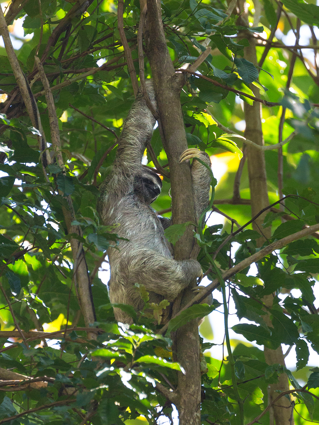I hoped to get a decent photo of a sloth, and thankfully our guide – Jovanna – was able to spot distant sloths that were effectively invisible to the rest of us. Over the course of our visit Jovanna found five sloths, along with bats, snakes, lizards, deer, a frog nesting in a tree, and an agouti (a large tropical rodent).