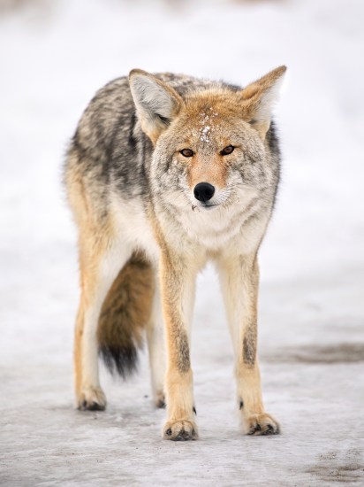 On my way out of the park I noticed a coyote at a pullout and stopped for a few photos. To my surprise the coyote seemed not at all wary of my presence. At first I shot from my window, but, curious about its behavior, I stepped out of the car, expecting the coyote to dash off. Instead it just lay down in the snow, totally relaxed. It was disheartening. The coyote didn’t look sick or injured, so I guessed it had been fed by people and was becoming dangerously habituated. Later I read an article about a professional photographer who’d recently been caught feeding foxes in Grand Teton National Park (although he denied it). It’s not uncommon for park rangers to have to put down food-conditioned animals, and it makes me crazy that anyone – especially those who should know better – would put wildlife at risk that way. Realizing that my presence wasn’t helping the habituation problem, I said goodbye to the coyote and headed back to Gardiner.