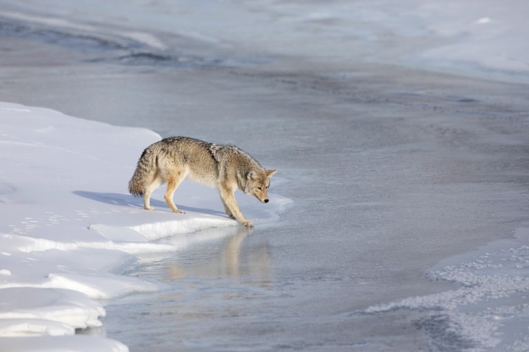 Coyote Testing the Ice on the Lamar River