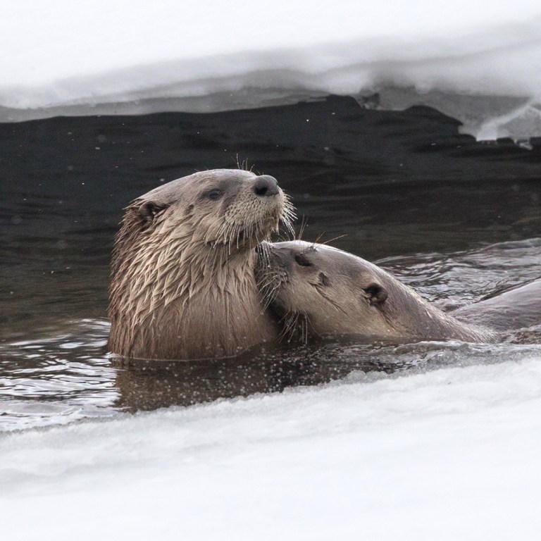 Three Otters on Frozen Lamar River in February