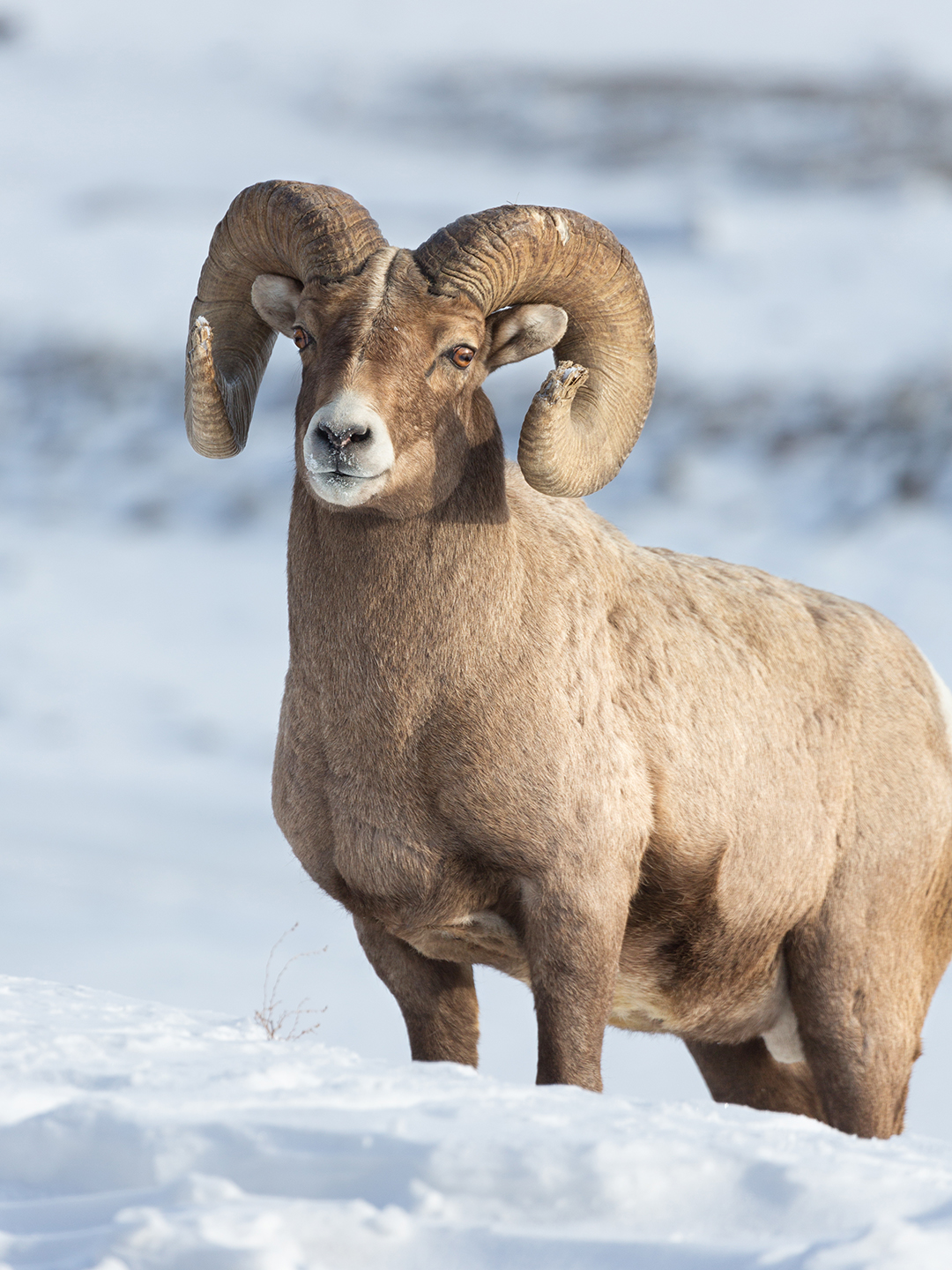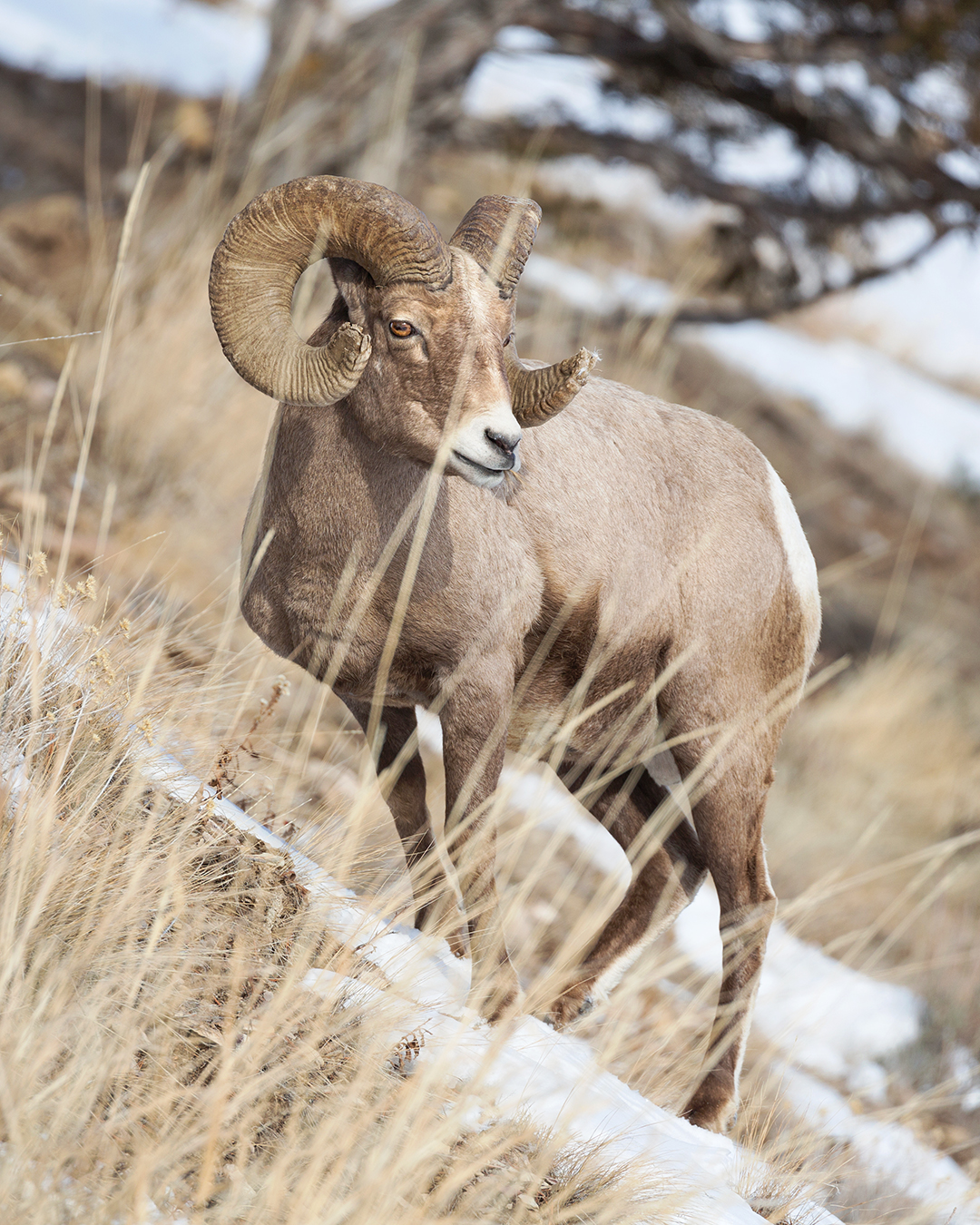 There’s a rhythm to the seasonal movements of Yellowstone’s wildlife.  Different animals tend to rotate through different areas of the park in somewhat consistent patterns, most of which I’m still learning.  Bighorn sheep, for example, usually appear on the cliffs overlooking Hitching Post and Confluence around mid-winter, and this year was no exception.  Starting in January I began spotting at least one ram grazing on the hillsides every time I drove by.