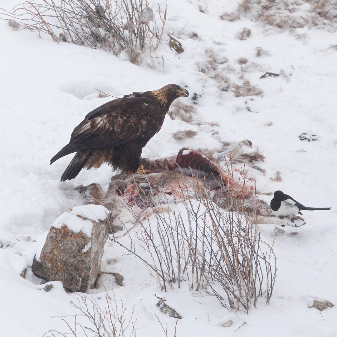 Golden Eagle on a Bighorn Sheep Carcass
