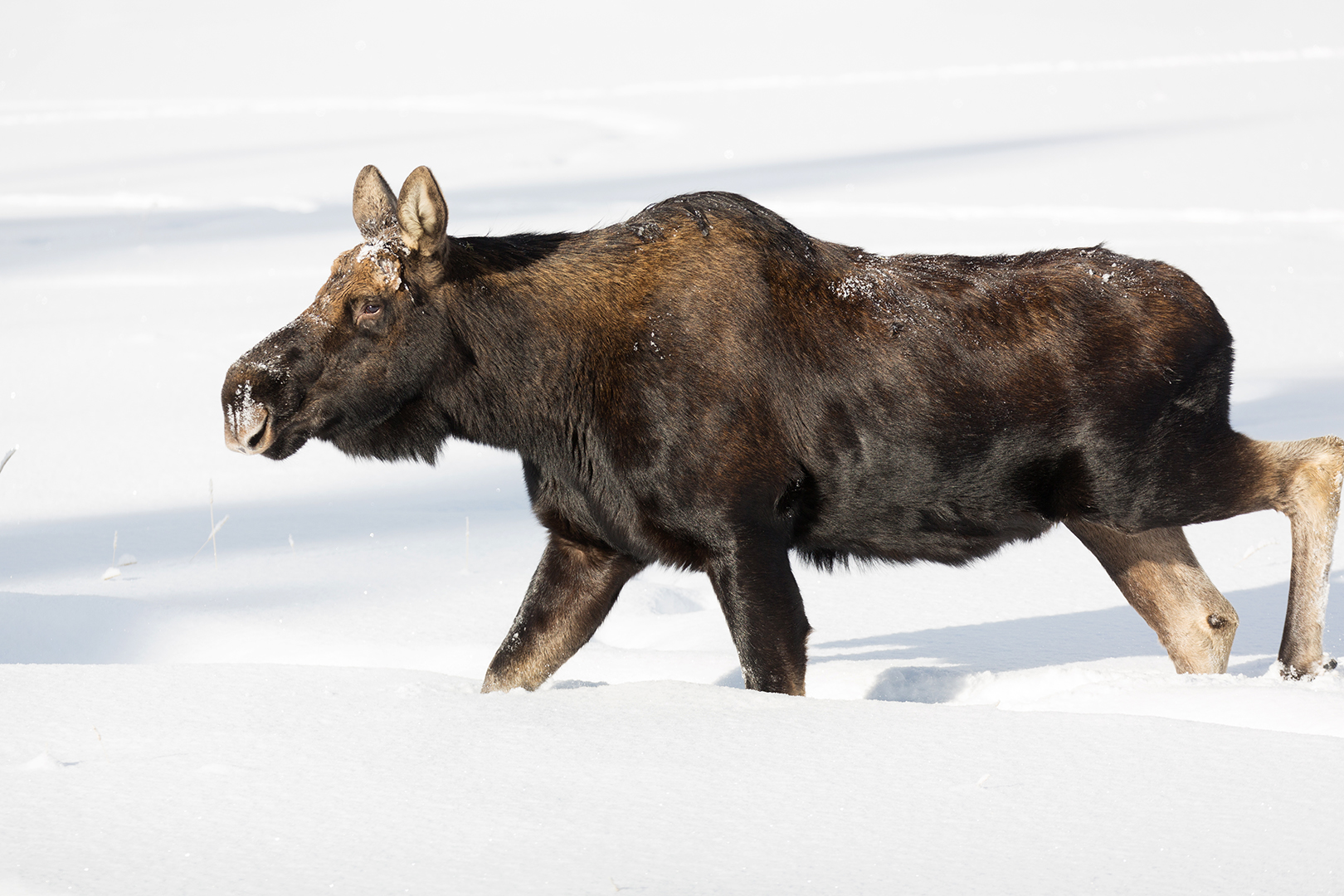 Moose Walking through Snow at Lower Baronette