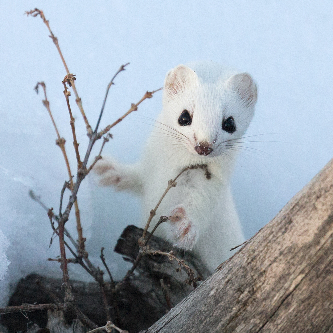 One morning I pulled up to the bear den and saw my photographer friend Shane sitting on the back of his truck. “Get your camera!” Shane blurted out with a muffled yell. “There’s a white weasel right here!” He didn’t need to tell me twice. Camera in hand, I hopped out of my car as quickly and quietly as possible and almost immediately saw a furry white blur no more than 10 feet down the slope from Shane’s truck. An ermine!