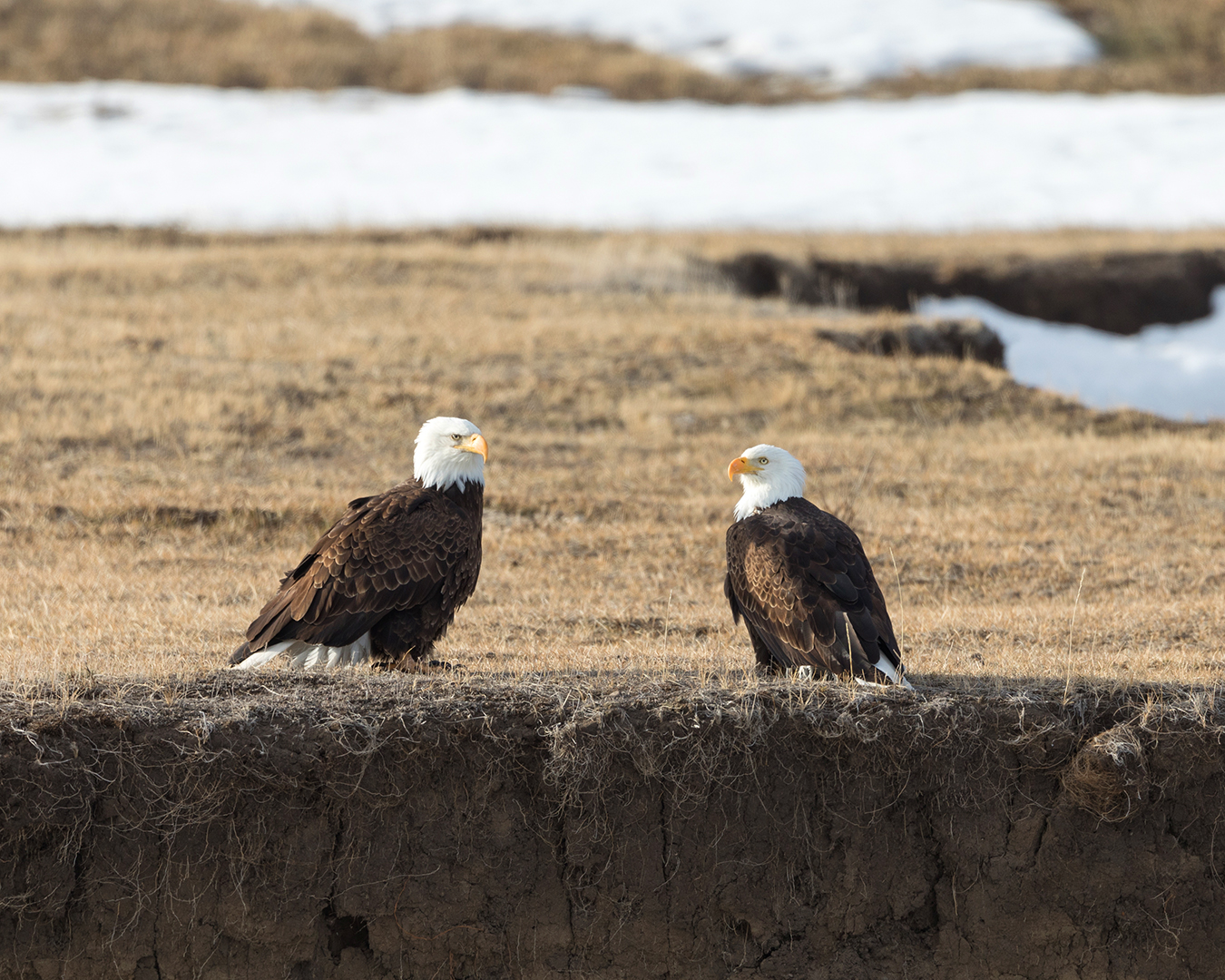 As Rick is to wolf watching, Bob Landis is to wolf videography. Bob has captured a large percentage of the most iconic footage of Yellowstone’s wolves, starting – like Rick – all the way back in 1995. And also like Rick, he’s still out in the park every morning. I always feel like I’m in the right place for wildlife when I see Bob there too. One morning in mid-March I found myself next to him at a pullout in Lamar Valley, watching as bald eagles battled coyotes over a mule deer carcass. While all that was playing out, a wolf with blood on its neck briefly appeared on a ridge overlooking the scene.