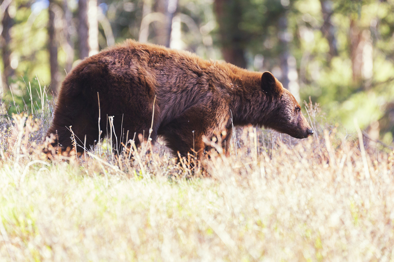 David, kneeling at the roadside, calmly continued watching the bear through binoculars. My mind jumped briefly to what it would be like to call David’s wife and parents with the news that their risk-averse husband/son had in fact been eaten by a grizzly. But one of the rangers, unhappy that the bear was approaching a road full of people, loudly cocked his shotgun and fired a noisemaker into the air, which sent the startled animal running back into the woods.