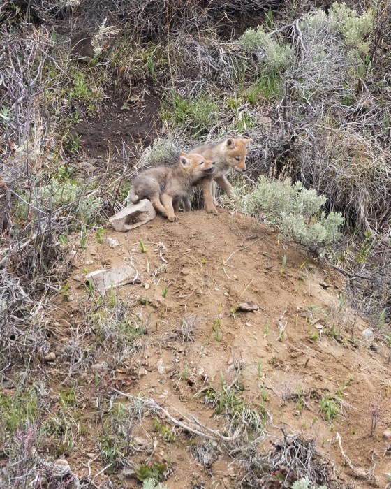 The appearance of coyote puppies was an unexpected surprise. The coyote mom dug her den on a hillside near Soda Butte, close enough to see well with binoculars, and on the last morning of my mom’s visit we spotted all five of her puppies out playing.