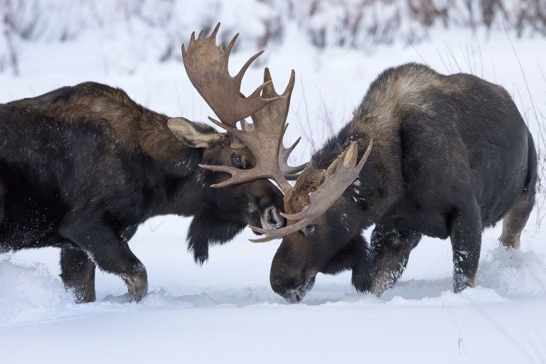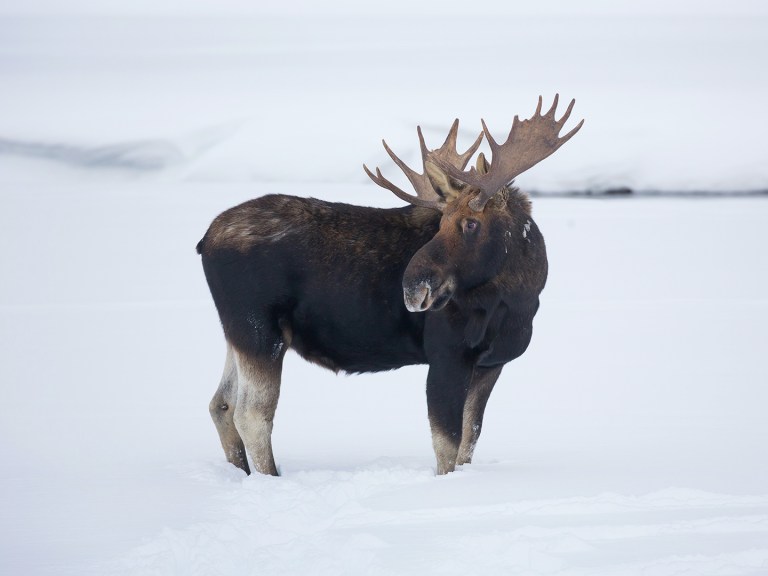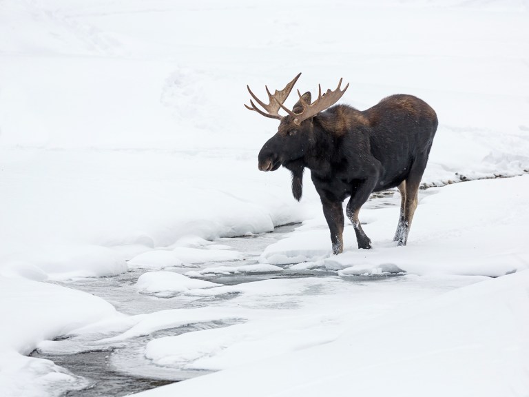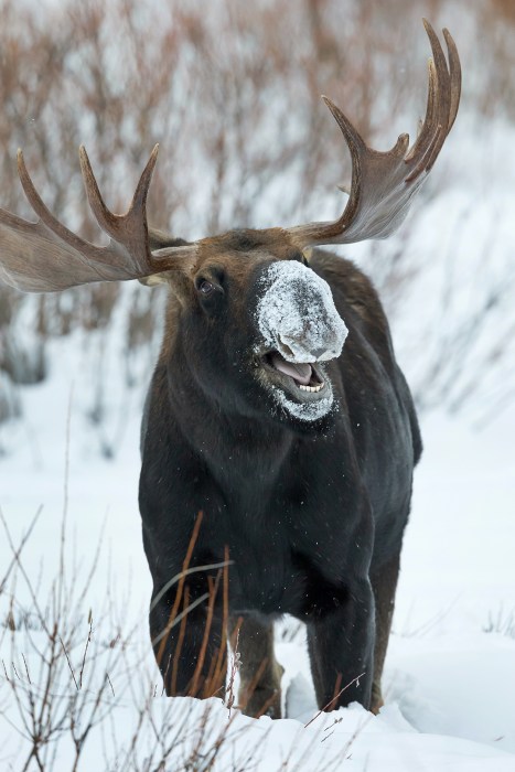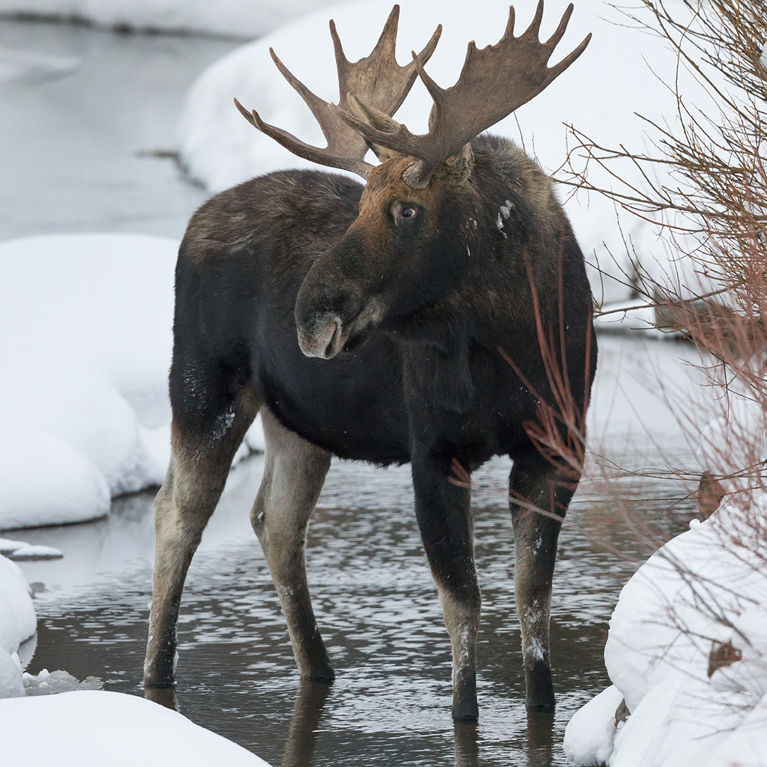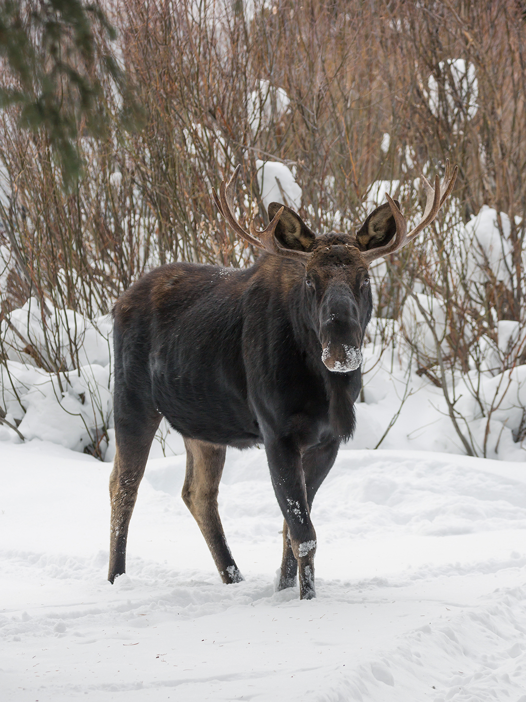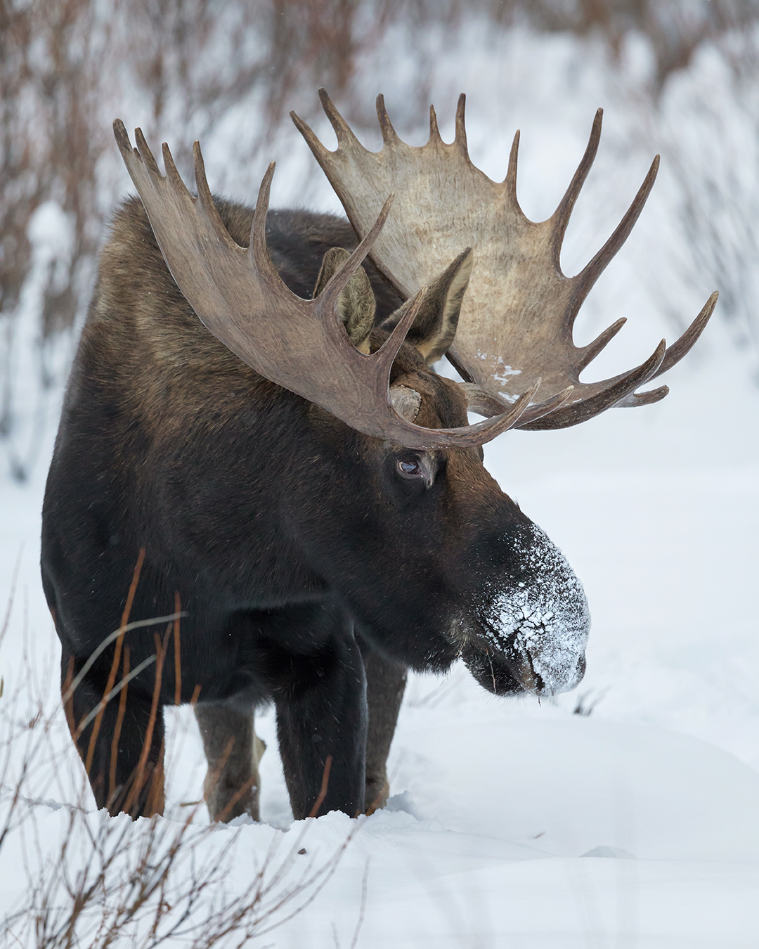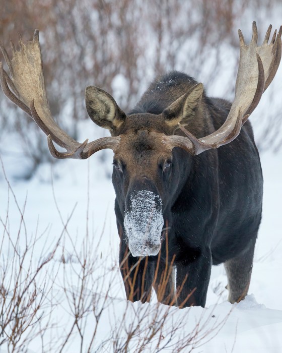 In the winter, however, most of the Grand Loop is closed, and the only stretch of road that’s open to regular traffic runs right through Yellowstone’s prime moose territory, from Lamar Valley all the way to the park’s northeast entrance (and beyond). When I spent a year photographing Yellowstone in 2017/18, I regularly spotted moose in that area, especially in the winter.