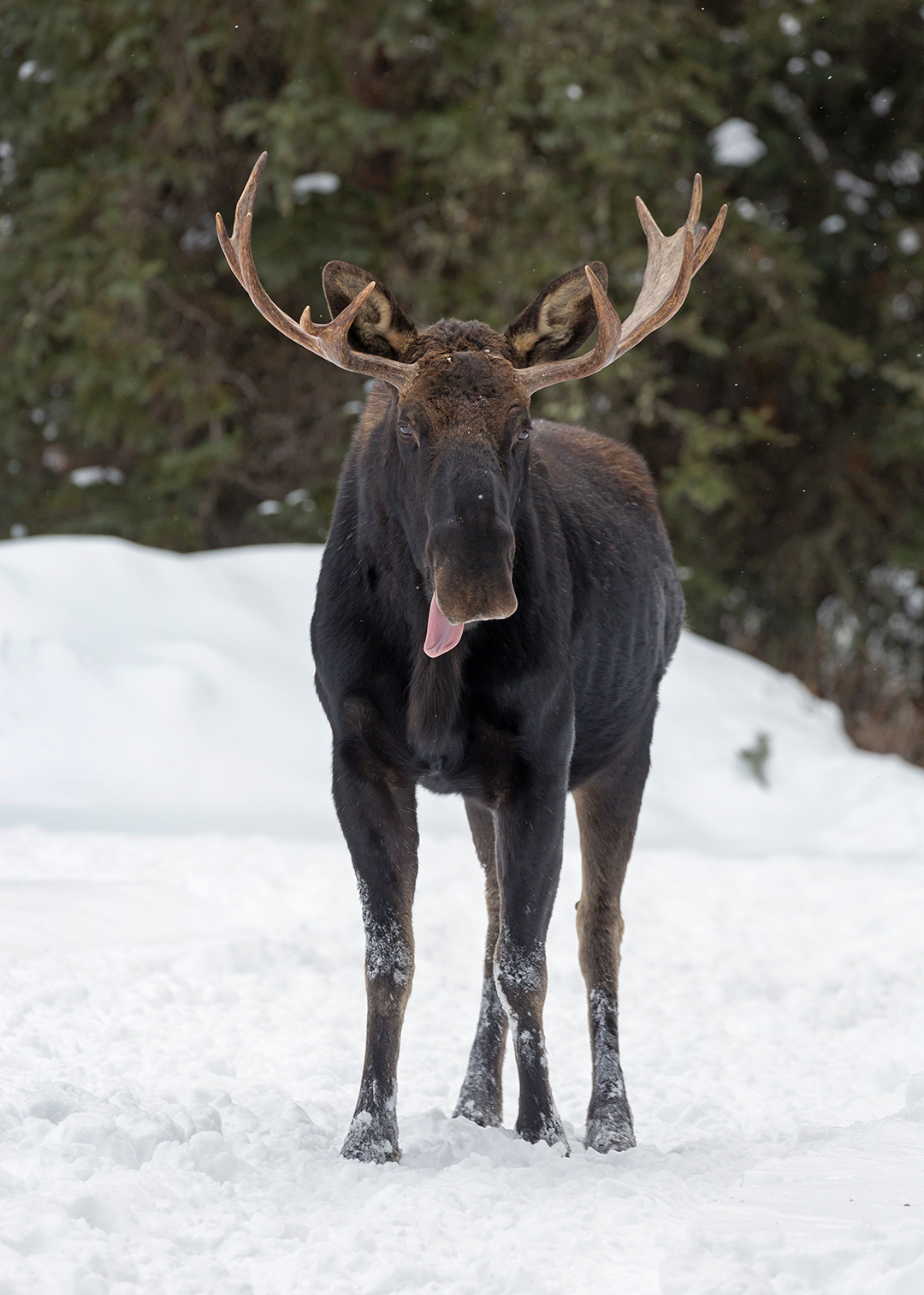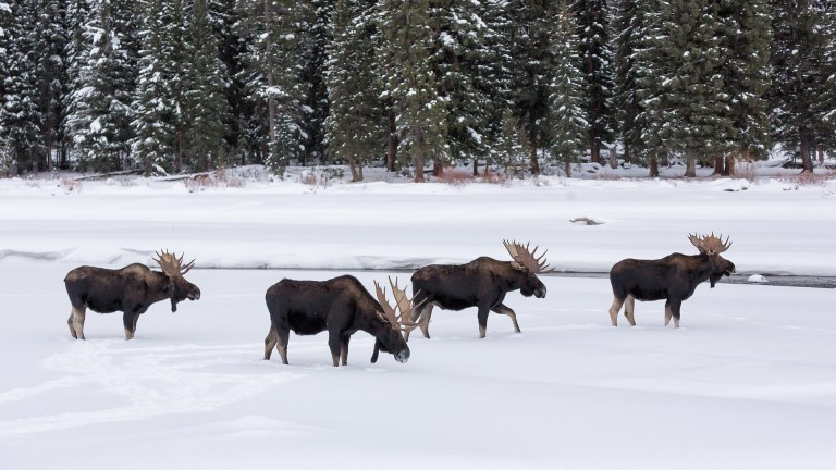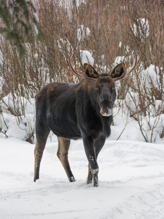 People who have many more years of Yellowstone experience than I do have confirmed that the moose population seems to be much healthier these days. One photographer told me that a decade ago it was thrilling to find a young bull moose with tiny antlers. Encountering a group of four big bulls sporting massive paddles would have been inconceivable.