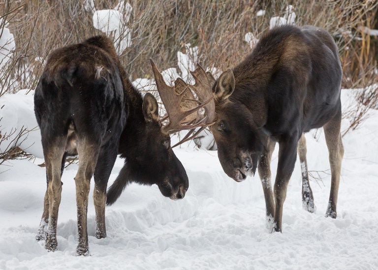 From what I’ve read, Yellowstone’s moose population dropped dramatically after the 1988 wildfires, which burned a significant percentage of their food sources. Apparently the number of moose in Yellowstone dropped from about 1,000 in the 1970s to fewer than 200 post-fire. Wolves were reintroduced to Yellowstone in 1995, but my understanding is that their net impact on the moose population is uncertain (wolves do sometimes prey on moose but not often, and the presence of wolves may be changing the grazing behavior of elk in a way that improves moose habitat).