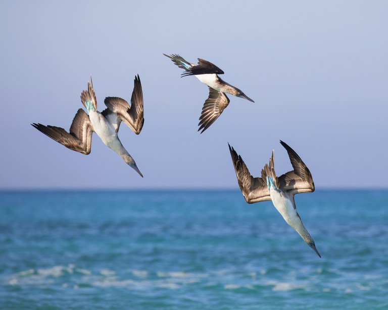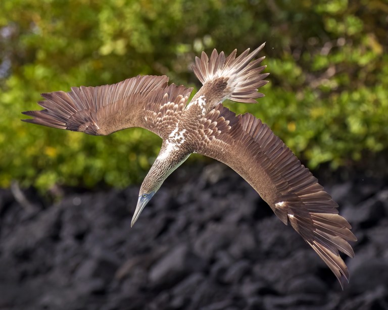Back in December I had a chance to photograph a Great Gray Owl near our home in Silver Gate, and I was mostly disappointed with my shots. In particular I thought I did a poor job of capturing the owl in flight. So I resolved to do better, and the birds in the Galapagos gave me every opportunity. I spent many hours photographing Blue-footed Boobies diving into the water for fish, trying my best to catch their aerial acrobatics and the way they streamline their bodies before knifing into the water.