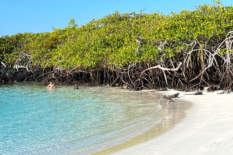“Well we just got back from Puerto Villamil, but mostly we’ve been hanging out here and going to Tortuga Bay in the mornings.”