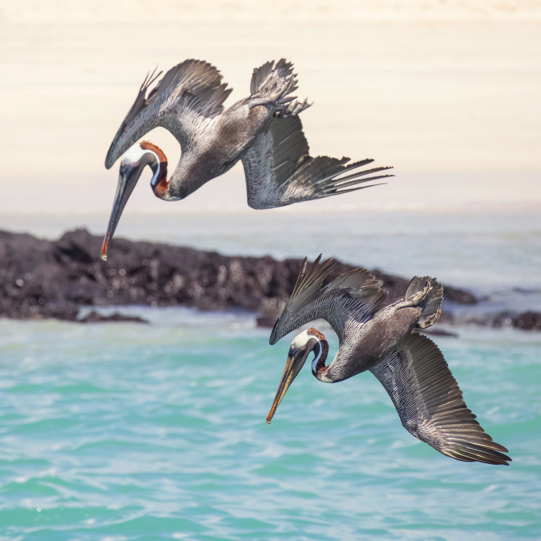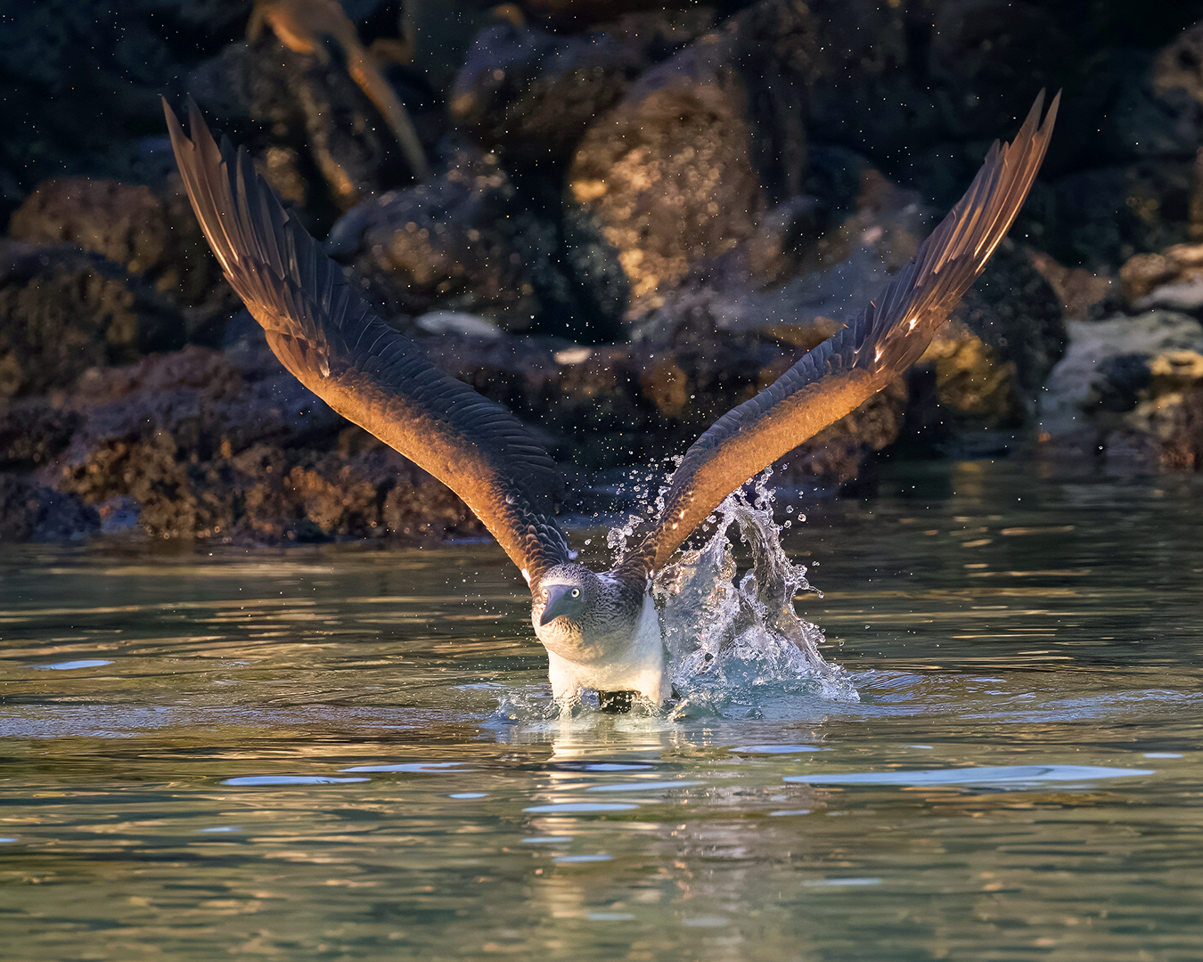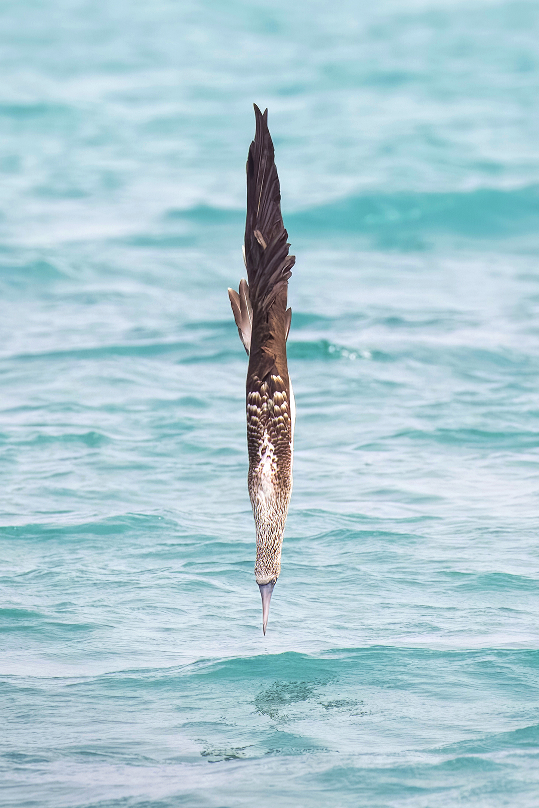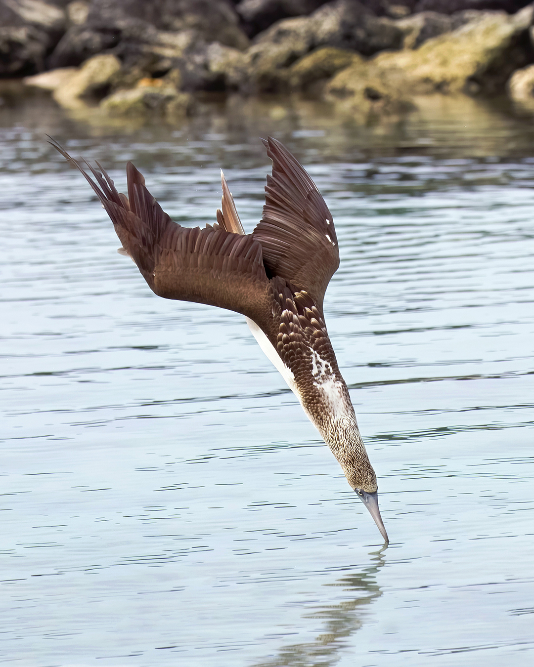 Back in December I had a chance to photograph a Great Gray Owl near our home in Silver Gate, and I was mostly disappointed with my shots. In particular I thought I did a poor job of capturing the owl in flight. So I resolved to do better, and the birds in the Galapagos gave me every opportunity. I spent many hours photographing Blue-footed Boobies diving into the water for fish, trying my best to catch their aerial acrobatics and the way they streamline their bodies before knifing into the water.