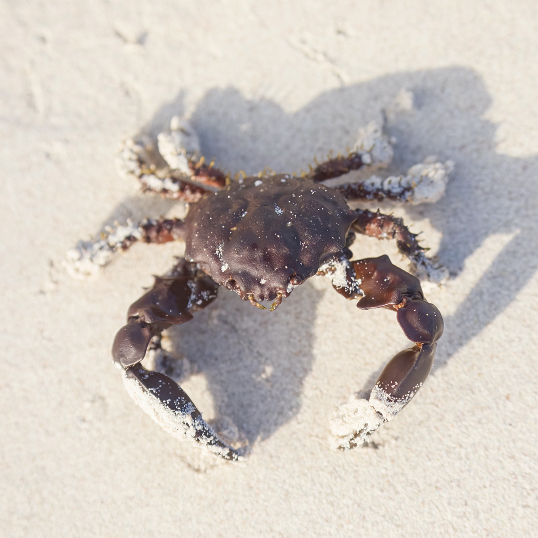 The octopus appeared to be stranded in the sand, and with the tide receding it wouldn’t be long before a bird turned my new friend into a meal. But in trying to help would I do more harm than good? I pushed my index finger into the sand underneath the octopus, raised it up, and carried the little guy over to the surf. Initially the octopus refused to let go. Its tiny suction cups clung to my finger, forcing me to very gently brush it loose. I hoped the octopus would swim away in the water, but within a minute it washed back up on the sand. I picked it up again and decided to take it to a large tidepool that had a channel to the ocean. I set the octopus down in the water on top of a medium-sized rock, and almost immediately it seemed to come to life. Its coloring shifted slightly to better match the new environment, and all eight limbs sprung into action as the octopus worked its way down the side of the rock and vanished underneath. I have no idea if I helped or not, but I hope I at least improved its odds of surviving a little longer.