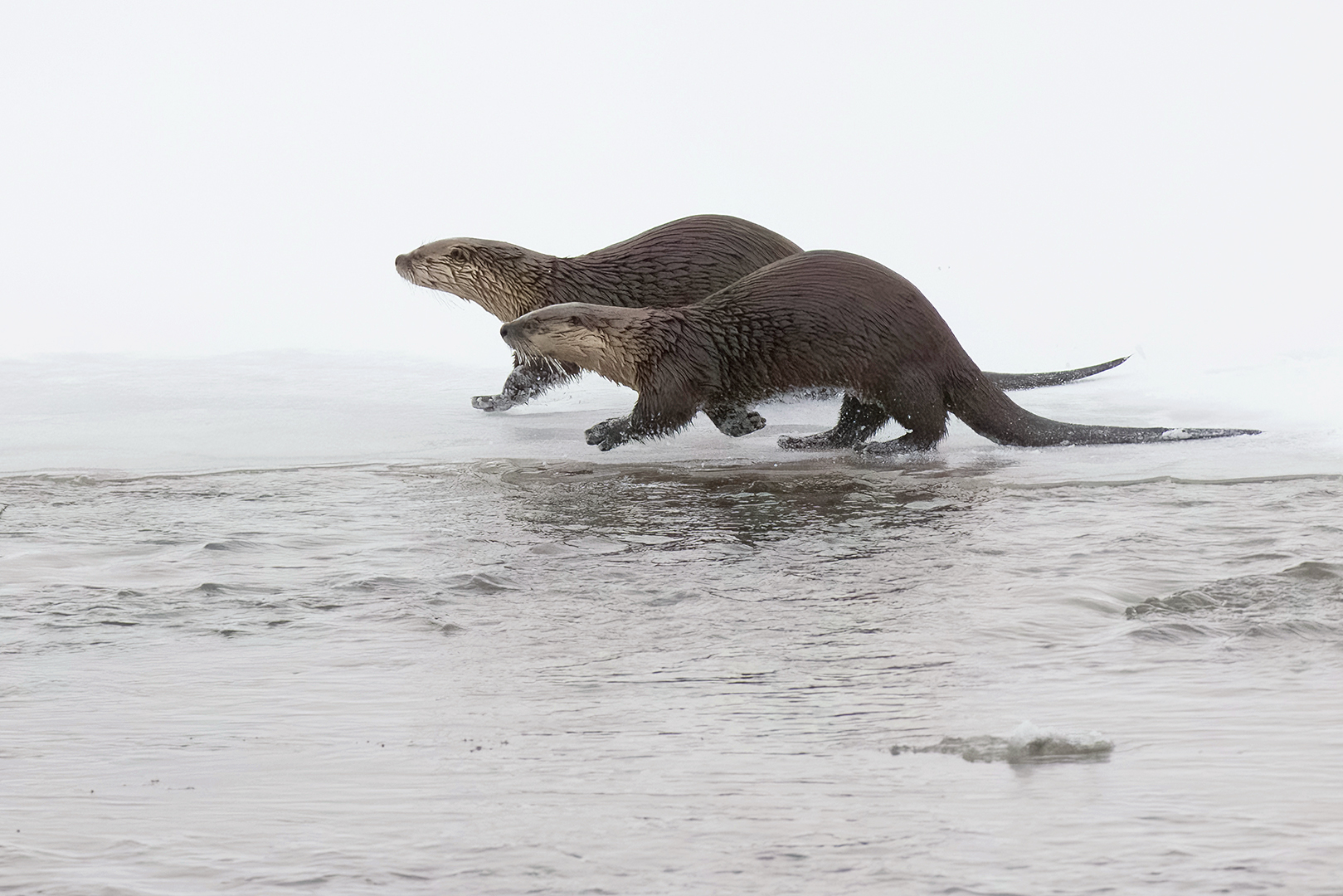On our first morning in Silver Gate I headed right into Yellowstone, worn out but excited to be in the park again. I drove to Tower Junction without seeing anything unusual, but on my way back I noticed some movement in the Lamar River – two otters had popped out of the water. They ran along the ice for a while before disappearing back into the river. A perfect welcome home from some of my favorite animals.