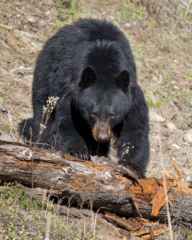 Black Bear Mom Flipping a Log